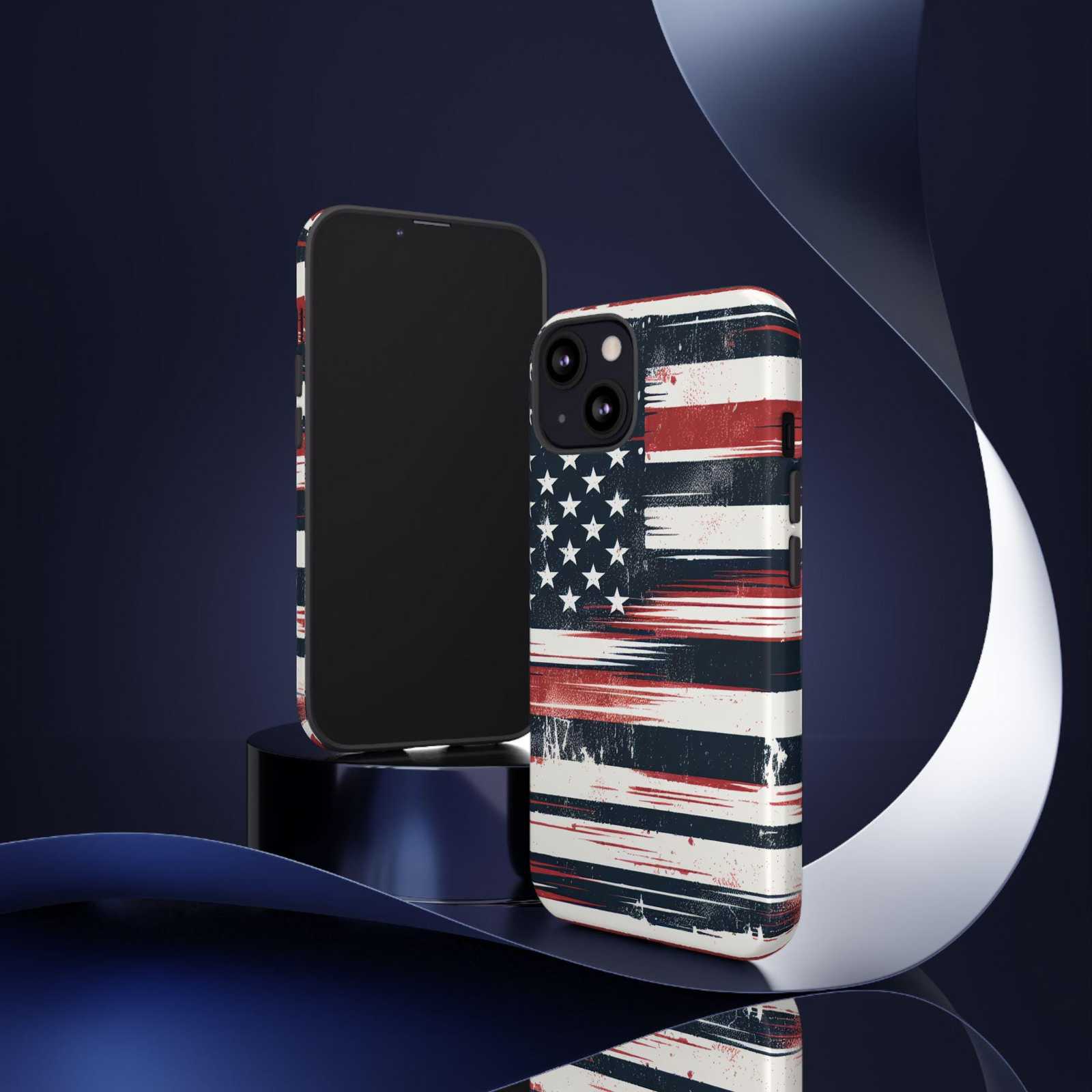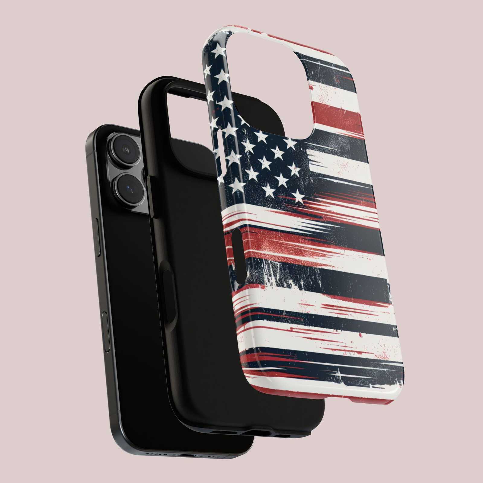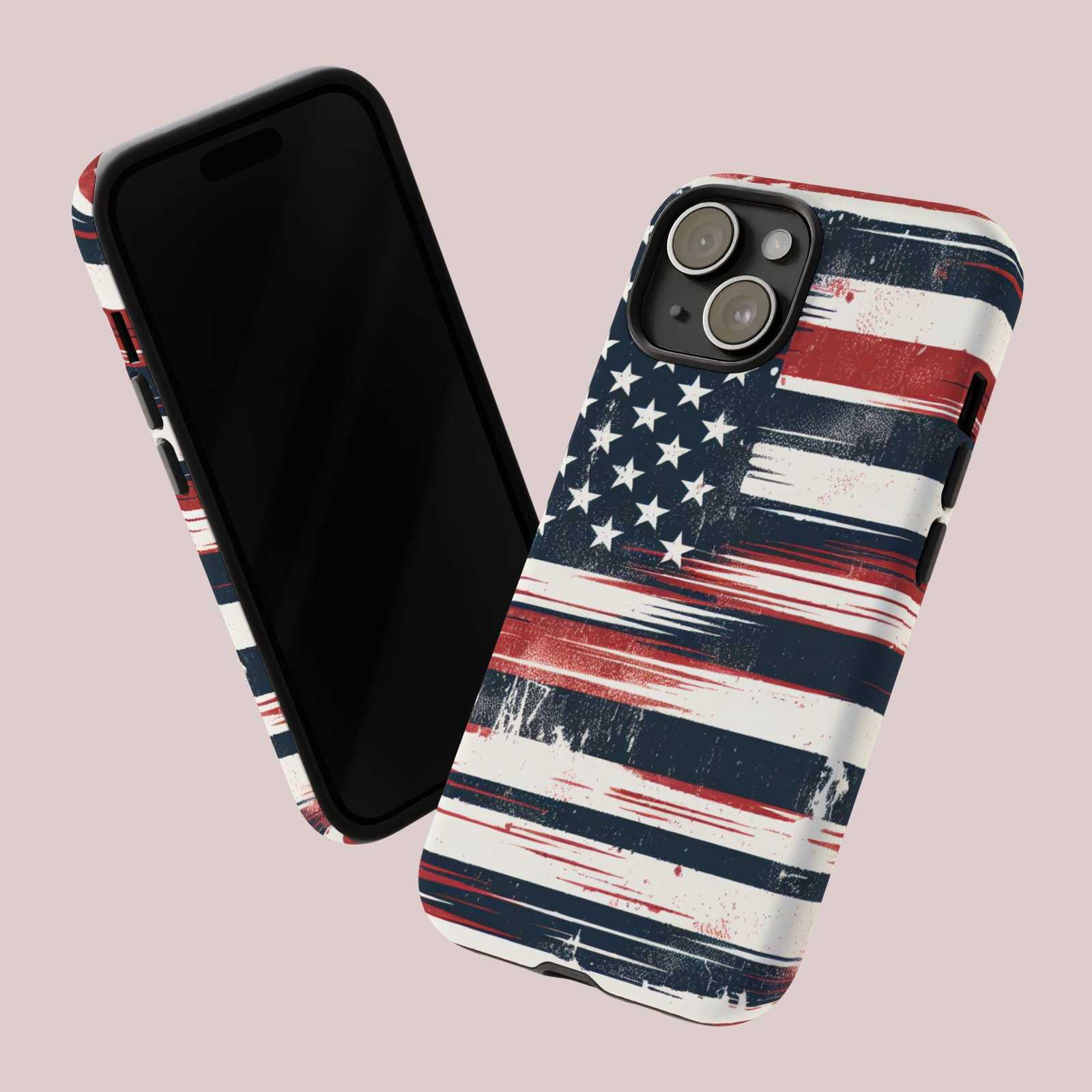 Showcase your personality with this durable phone case, designed to be as tough as you are. Featuring a striking American flag design, it makes a bold statement while protecting your device from everyday wear and tear. The case fits seamlessly into your active lifestyle, providing peace of mind whether you?re on an adventure or simply commuting. Perfect for patriots, this phone case is an ideal gift for holidays like Independence Day or Memorial Day, as well as for birthdays and celebrations. It not only looks great but also stands strong against the elements, making it a must-have for anyone wanting to express their love for the USA.