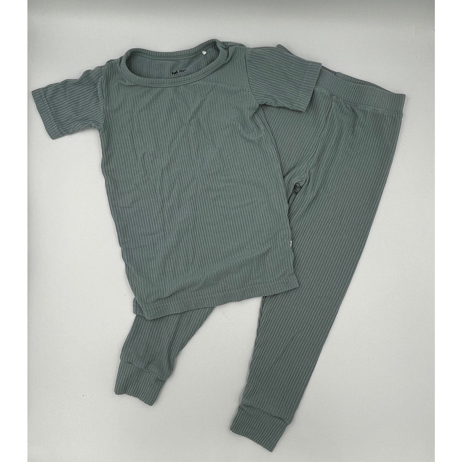 Keep your little one cozy in these buttery-soft Little Sleepies ribbed bamboo pajamas in the classic Stormy colorway. This set includes a short-sleeve top and matching pants, both made with breathable and stretchy bamboo viscose for ultimate comfort.