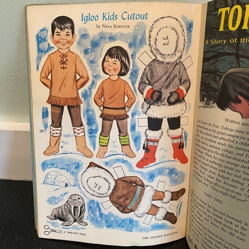 Golden Magazine January 1966 Penguins Fishing Paper Dolls Intact Igloo Kids