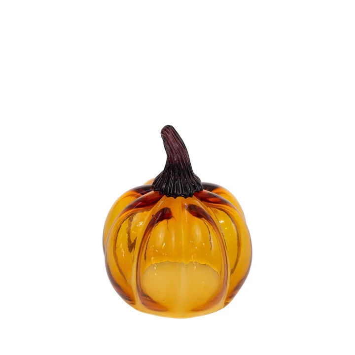 This small 5-inch amber glass pumpkin figurine by Boston International is a traditional style decoration perfect for all occasions. Made of shiny glass, it features a free-standing design and is easy to clean with a damp cloth. The pumpkin theme adds a festive touch to any room, making it a charming addition to your home decor. Made in China, this figurine is a unique and elegant piece that is sure to enhance the ambiance of your space.