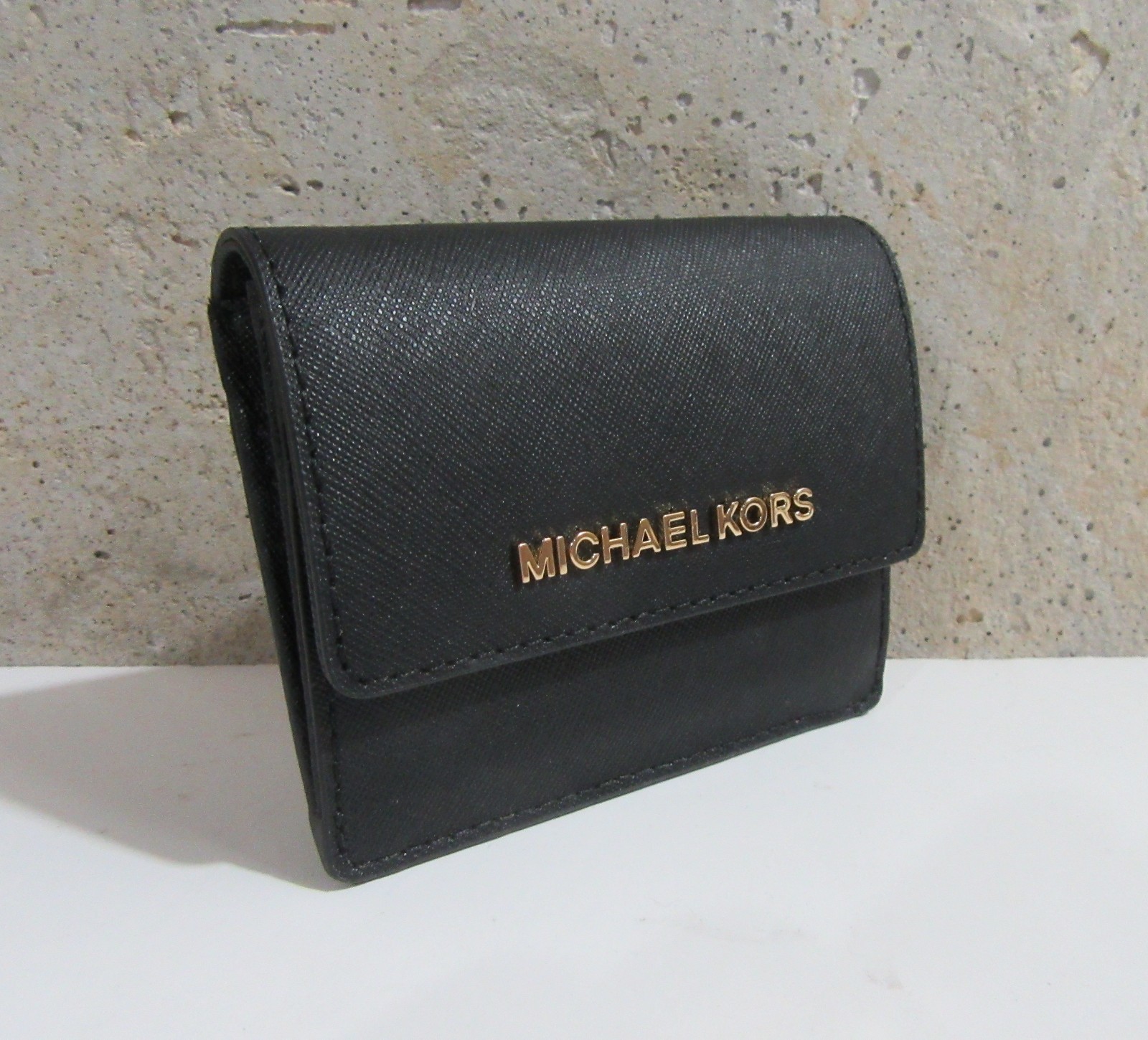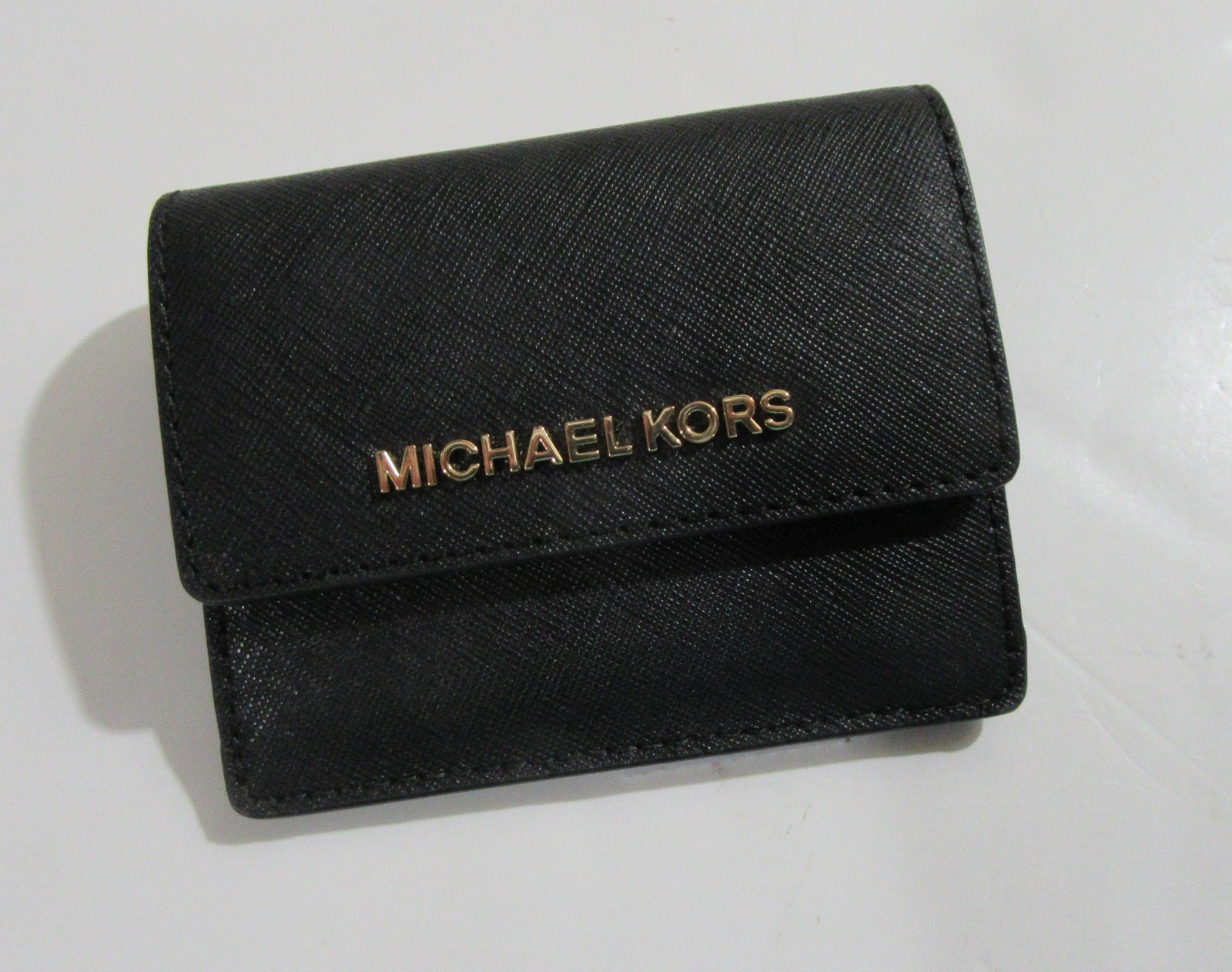 Michael Kors Jet Set Travel Leather Card Case ID Key Holder Wallet Black