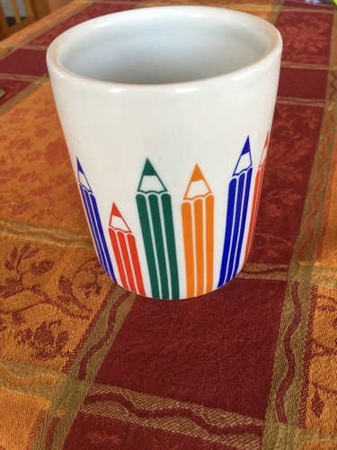 VTG Porcelain Mug/ Pencil Holder w/ Multicolor Pencil Detail Made in Israel