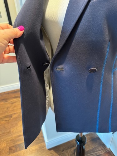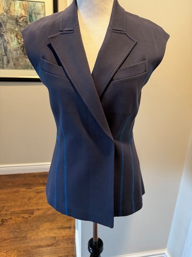 This Rebecca Taylor jersey french blue sleeveless jacket is in excellent condition as it has never been worn. It features: