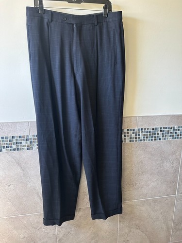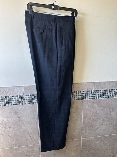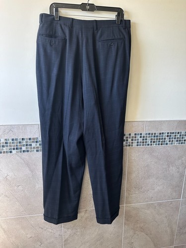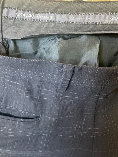 Giorgio Armani Black Beige Window Pane Pattern Wide Leg Men's Trousers SZ 42