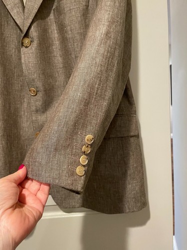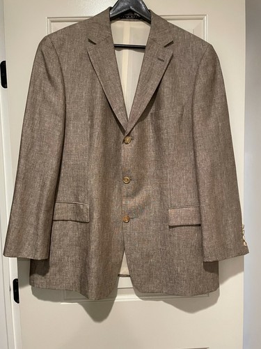 HUGO BOSS Wool and Linen Blend Caramel Brown Sport Jacket SZ 44 Made in USA