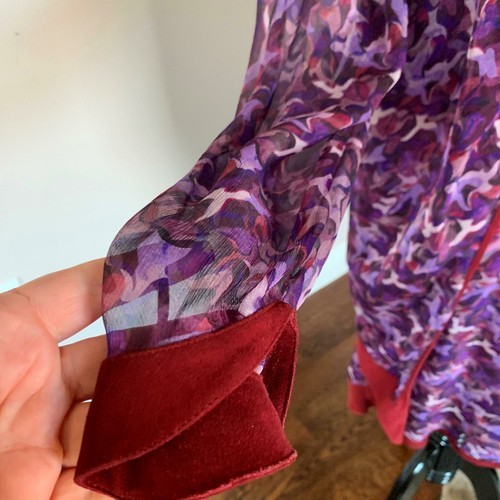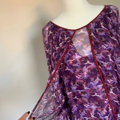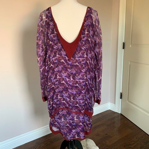 NWT NINA RICCI Purple Triple Layered Silk Cocktail Dress Plum Suede SZ FR 40/US 8
