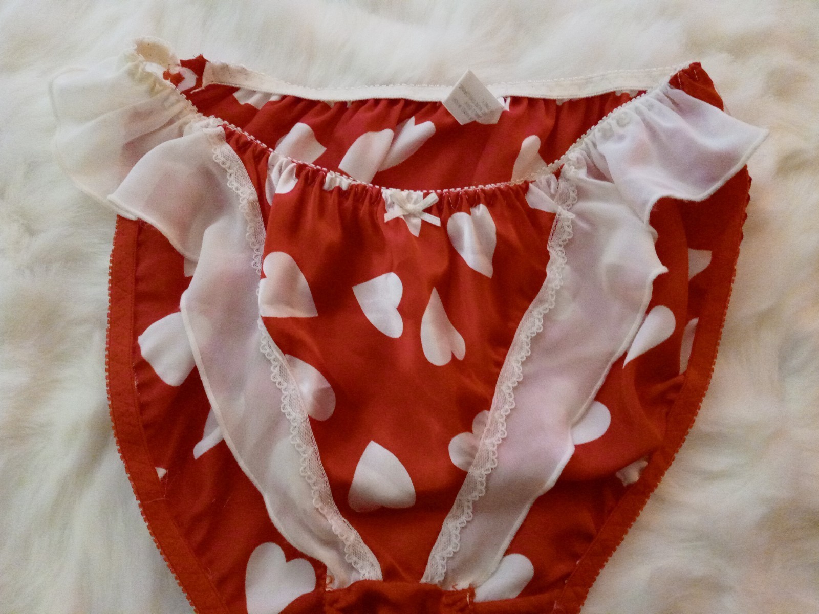 Vintage Rene Rofe White Hearts Sheer Lace Flutter Red Panties Size L/7