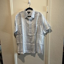 Club Room Luxury Striped Short Sleeve Linen Mens XL Button Shirt Blue White Tan