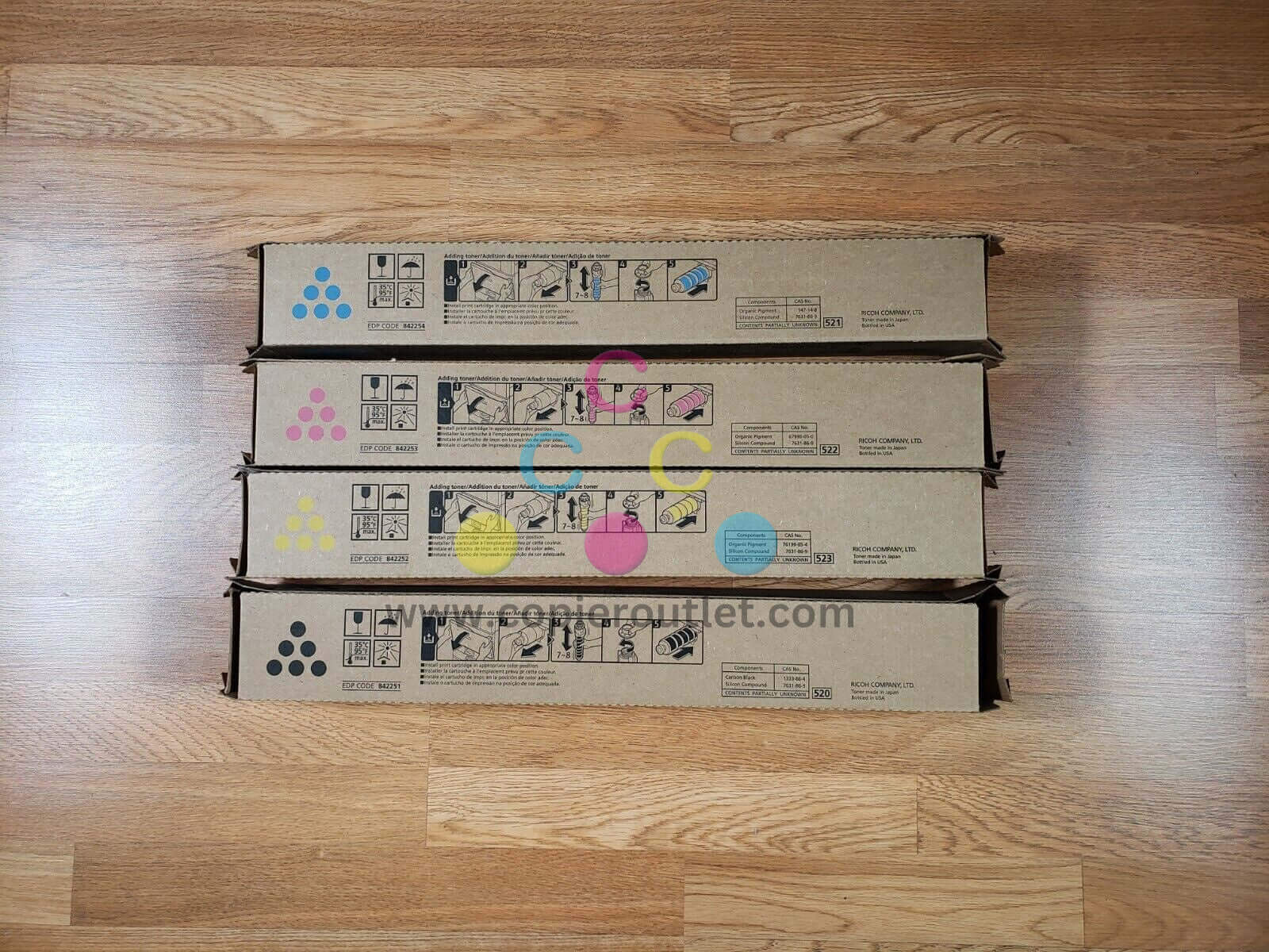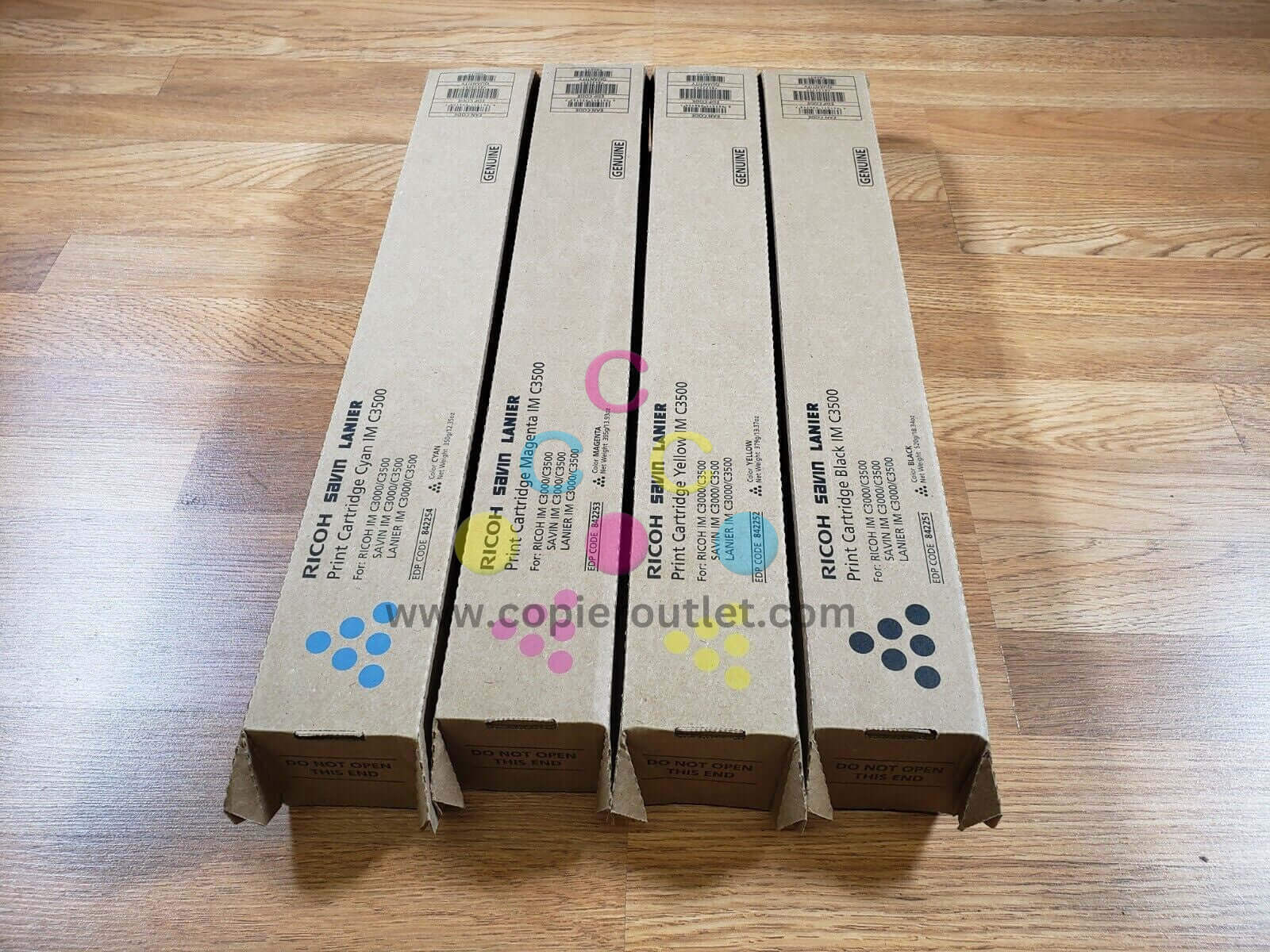 Genuine Ricoh IM C3500/C3000 CMYK Toner Set EDP: 842251 842252 842253 842254 New SAME DAY SHIPPING We are happy to help with any question For faster shipping service, please send us a message or contact us. Copier Clearance Center Copier Clearance Center was established in 1993. We buy and sell both domestically and internationally and have wide assortment of used copiers, fax machines and printers of all brands, All of our copiers are in house and available for your inspection. They all have been tested and rated for functions, cosmetics and overall appearance. We also sell genuine accessories of all popular brands, Our accessories include toners, imaging units, developers and copier parts such as fax board, fixing unit, fuser unit, roller, cleaning brush, drum blades etc. For more detailed information on our current inventory of Copiers and Accessories all potential buyers or their representatives are welcome to give us a call. We are more than happy to assist you with the pricing and guide you to find the copiers you wish to buy. Best Regards, On-Line Sales Team Copier Clearance Center Business Hours (Pacific Time): Monday-Friday: 9:00 am to 5:30 pm Copier Clearance Center Promo Video - YouTube Video will open in a new windowUsing the App? Paste link into a browser window: [isdntekvideo] All product and company names are trademarksTM or registered trademarks of their respective holders. Use of them does not imply any affiliation with or endorsement by them.
