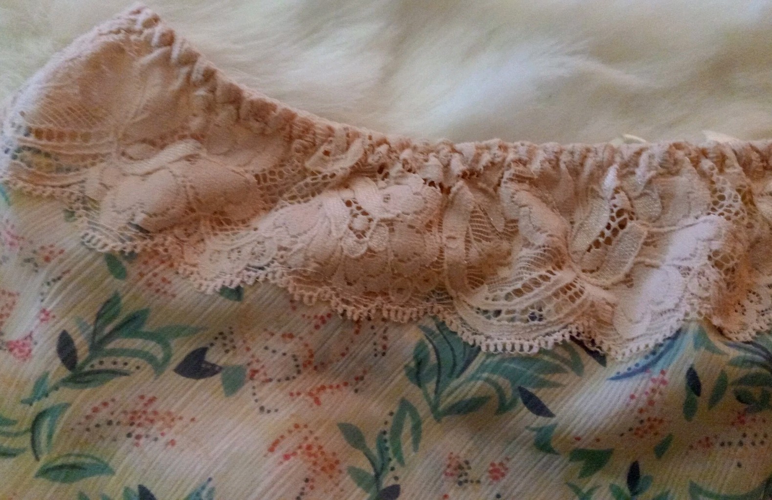The flutter lace waist adds a touch of elegance to the peach and light teal colors, making them a unique and charming addition to any wardrobe.
