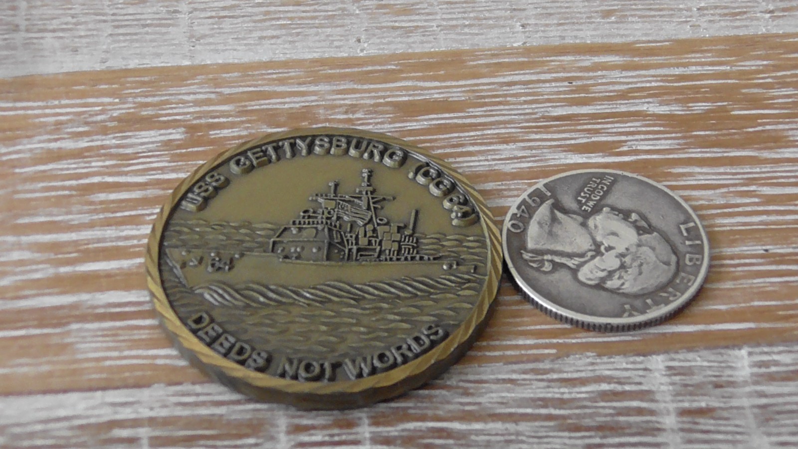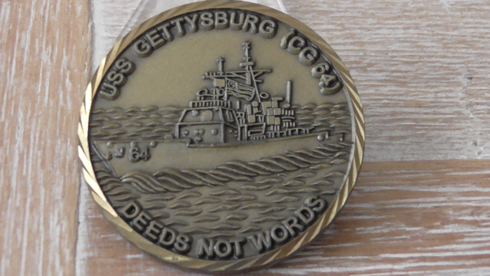 USN USS Gettysburg CG 64 Deeds Not Words Challenge Coin #D508