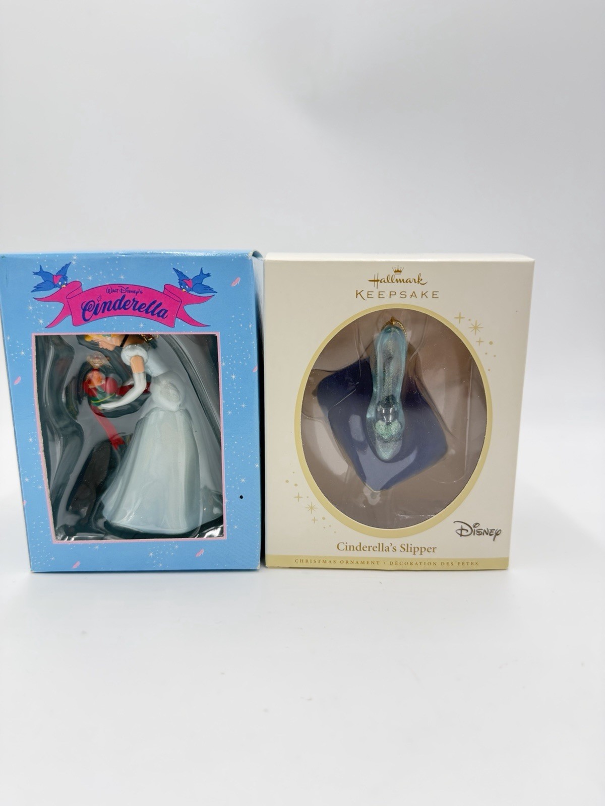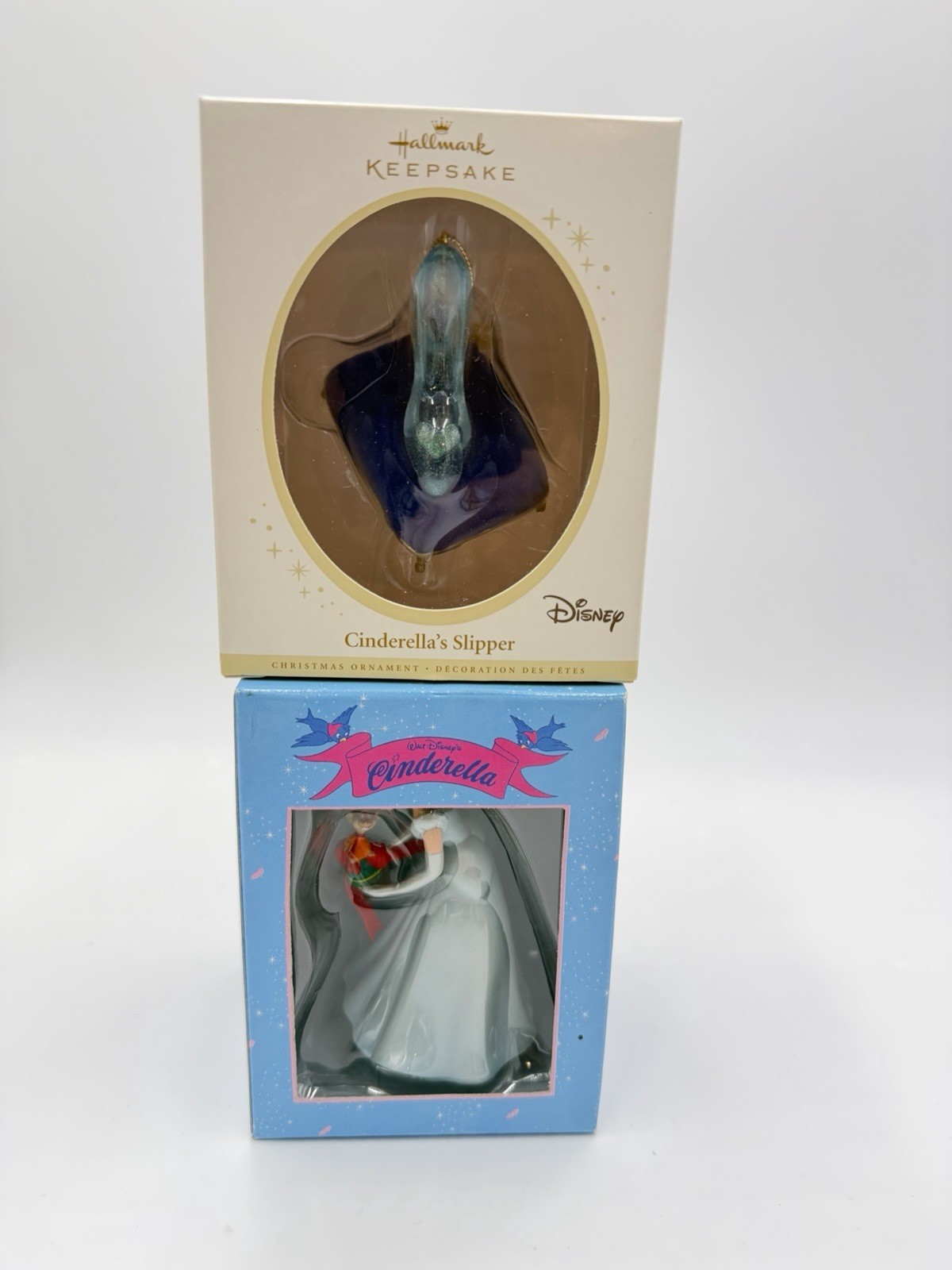 Hallmark &!Disney Grolier Cinderella Slipper Christmas Ornaments Set 2