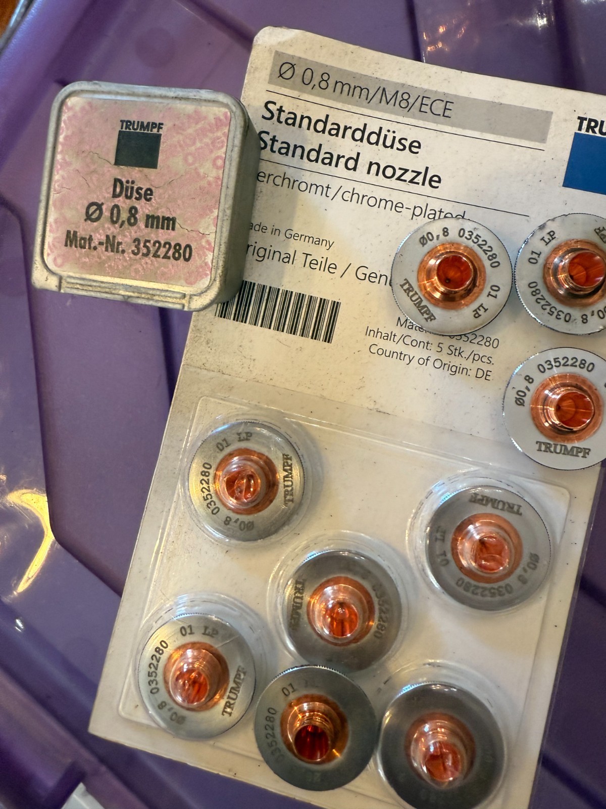 Nuovo Lotto Da 10 Trumpf Laser Macchina Ugelli Punta .8mm M8 Ece LP #0352288
