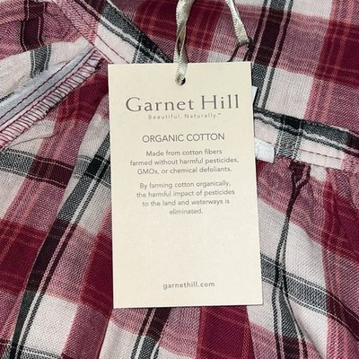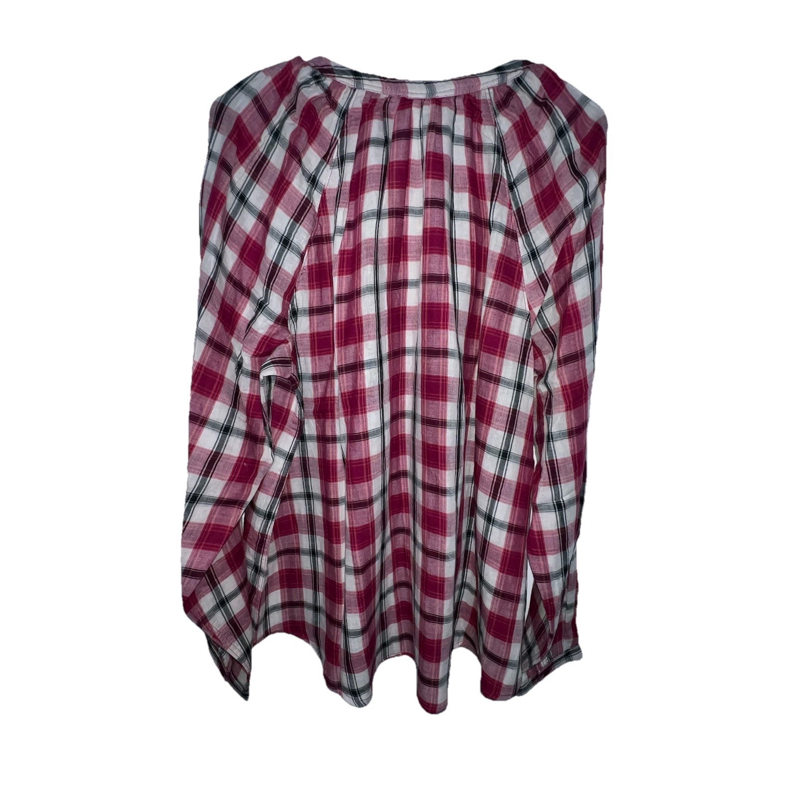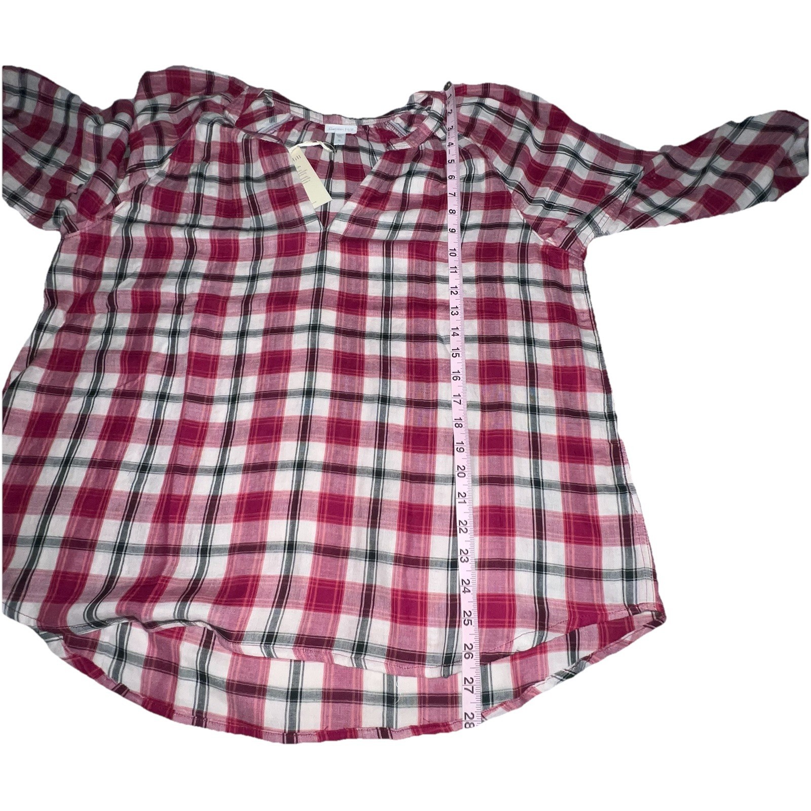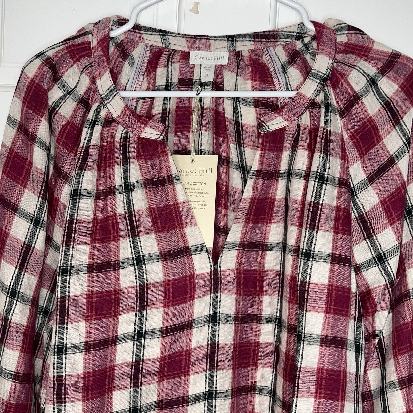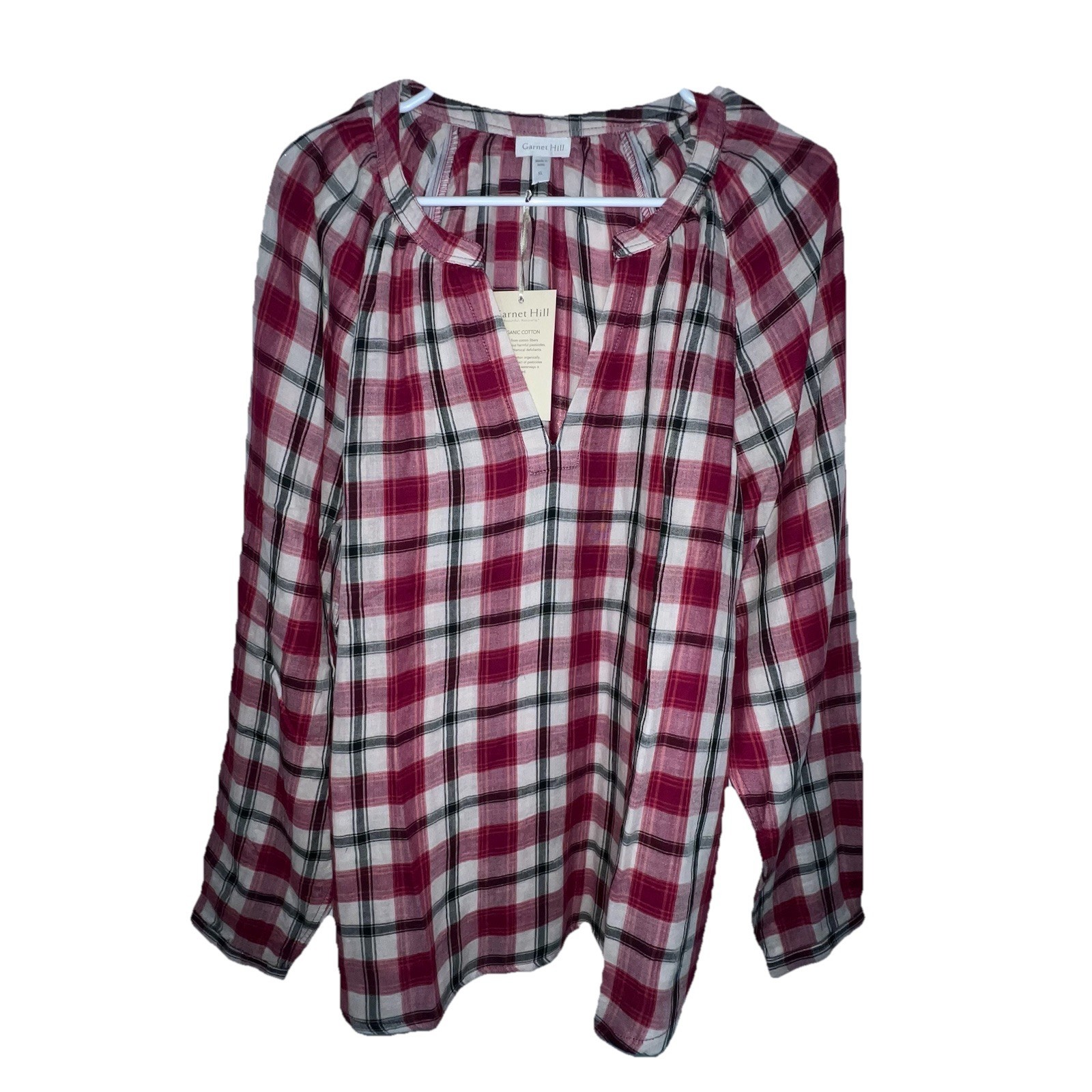 Garnet Hill Organic-Cotton Gauze Plaid Popover Women XL Red Multi Blouse NWT