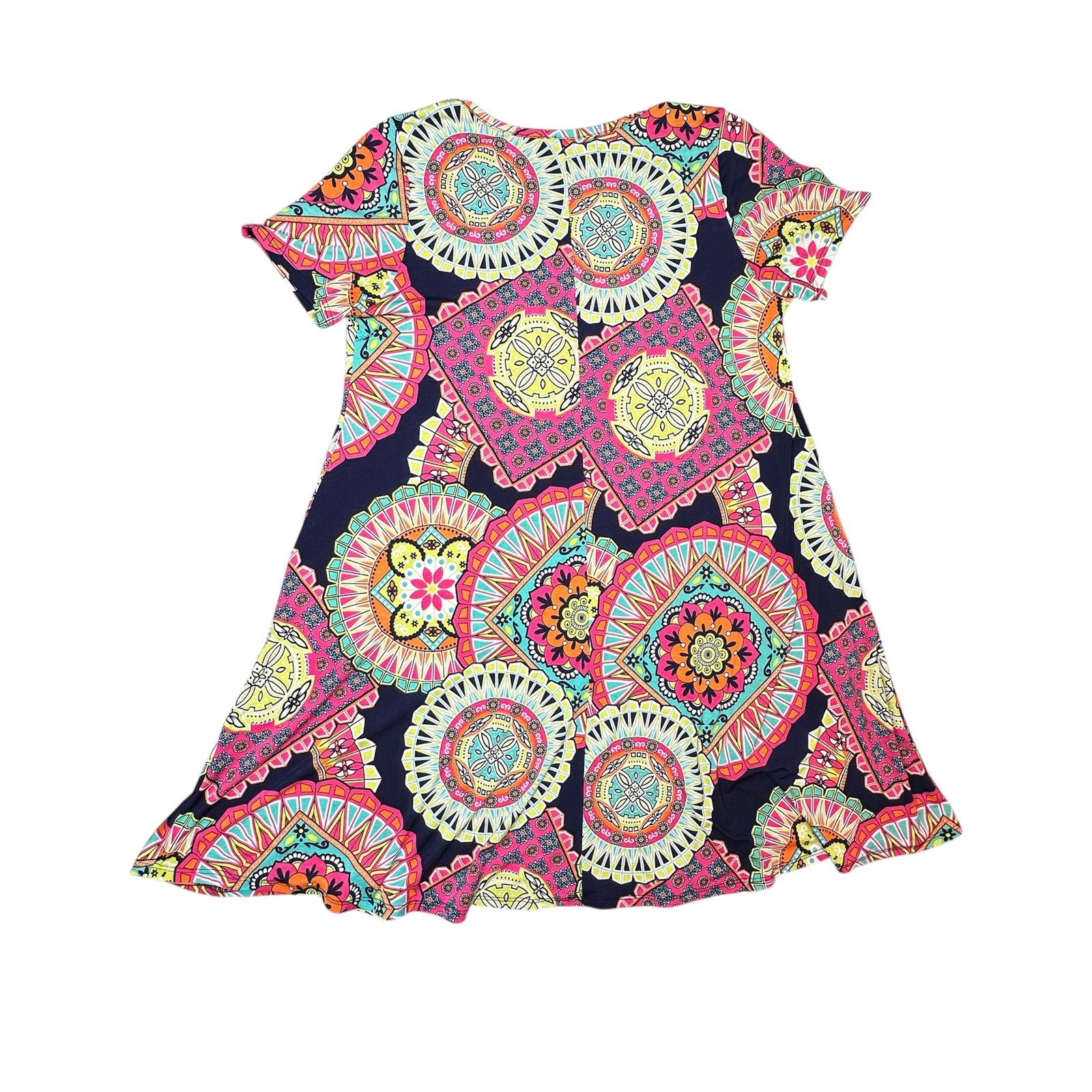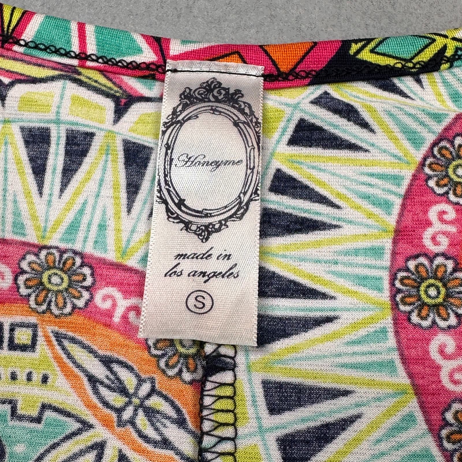 HoneyMe Dress Womens Small Colorful Boho Short Fun Flirty Everyday Tunic Top