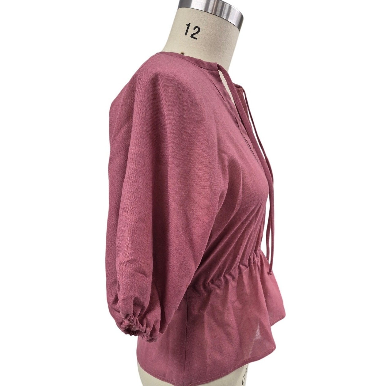 VTG 70s 80s Parts PJ Walsh Retro Mauve Blouse Peplum Drawstring Waist Sz M- in very good condition. Feels like 100% cotton gauze. 1/2 Dolman sleeves with elastic cuffs.