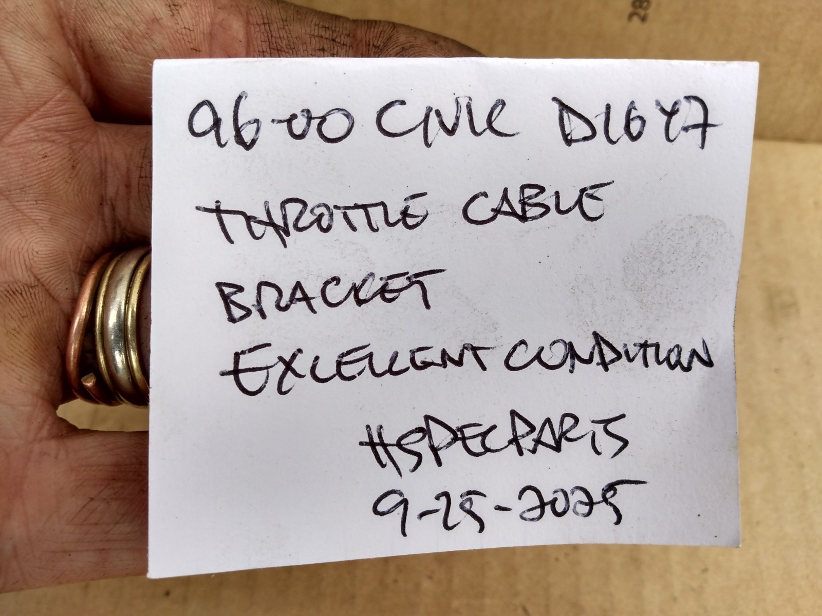 EXCELLENT USED CONDITION OEM THEOTTLE CABLE BRACKET FROM A 2000 CIVIC LX W/ 155K MILES. SHIPS USPS WITHIN A BUSINESS DAY OF PAYMENT.