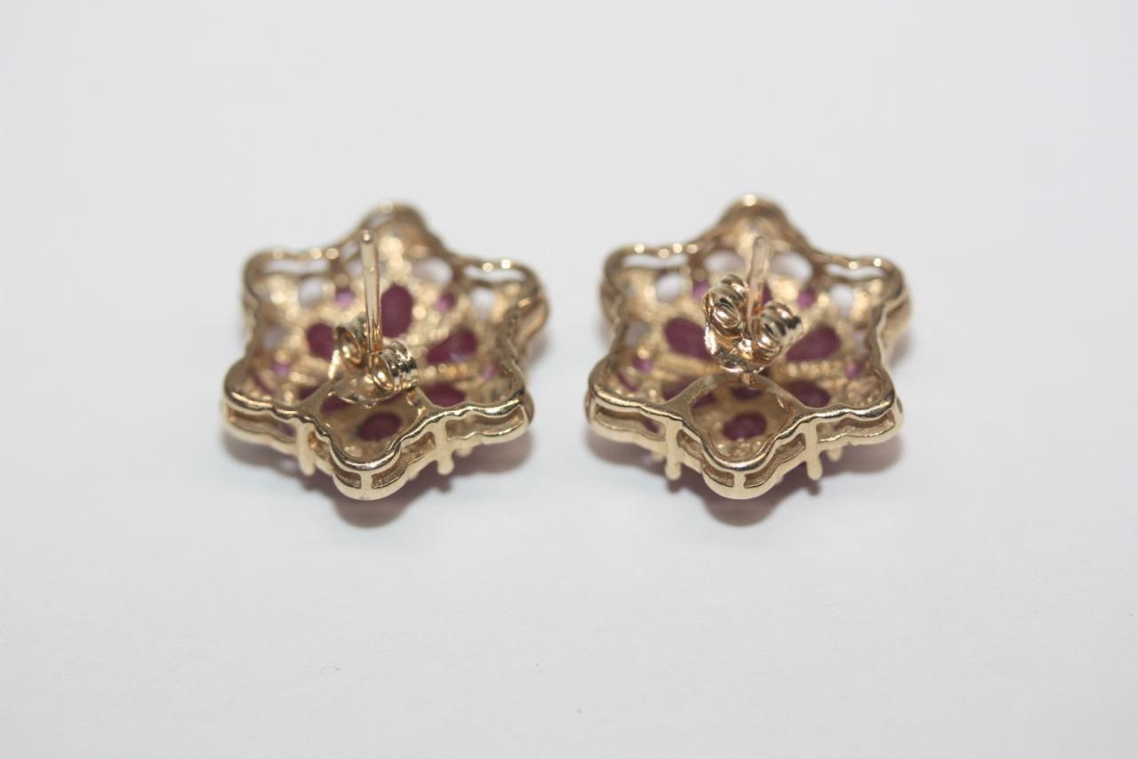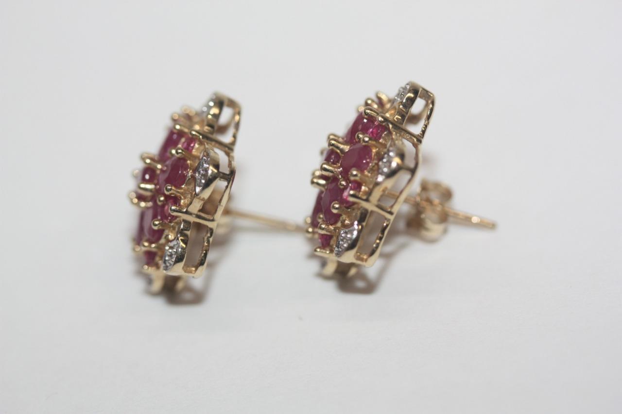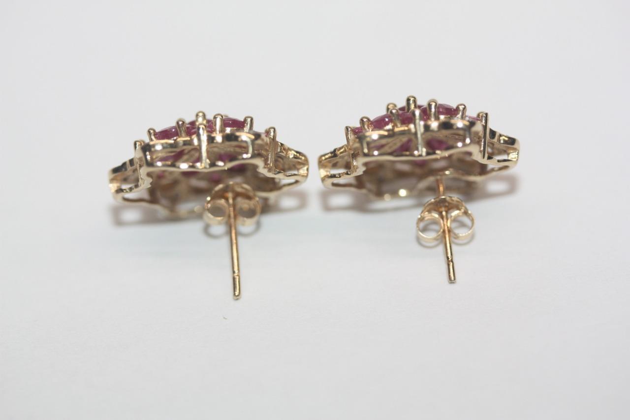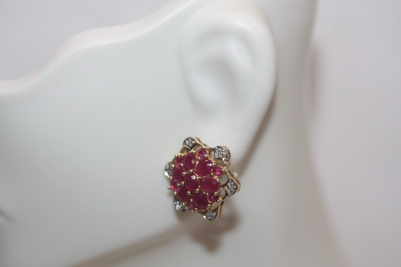 14K Yellow Gold Red Stones Natural Diamond Accent Stud Earrings. 5.3 grams