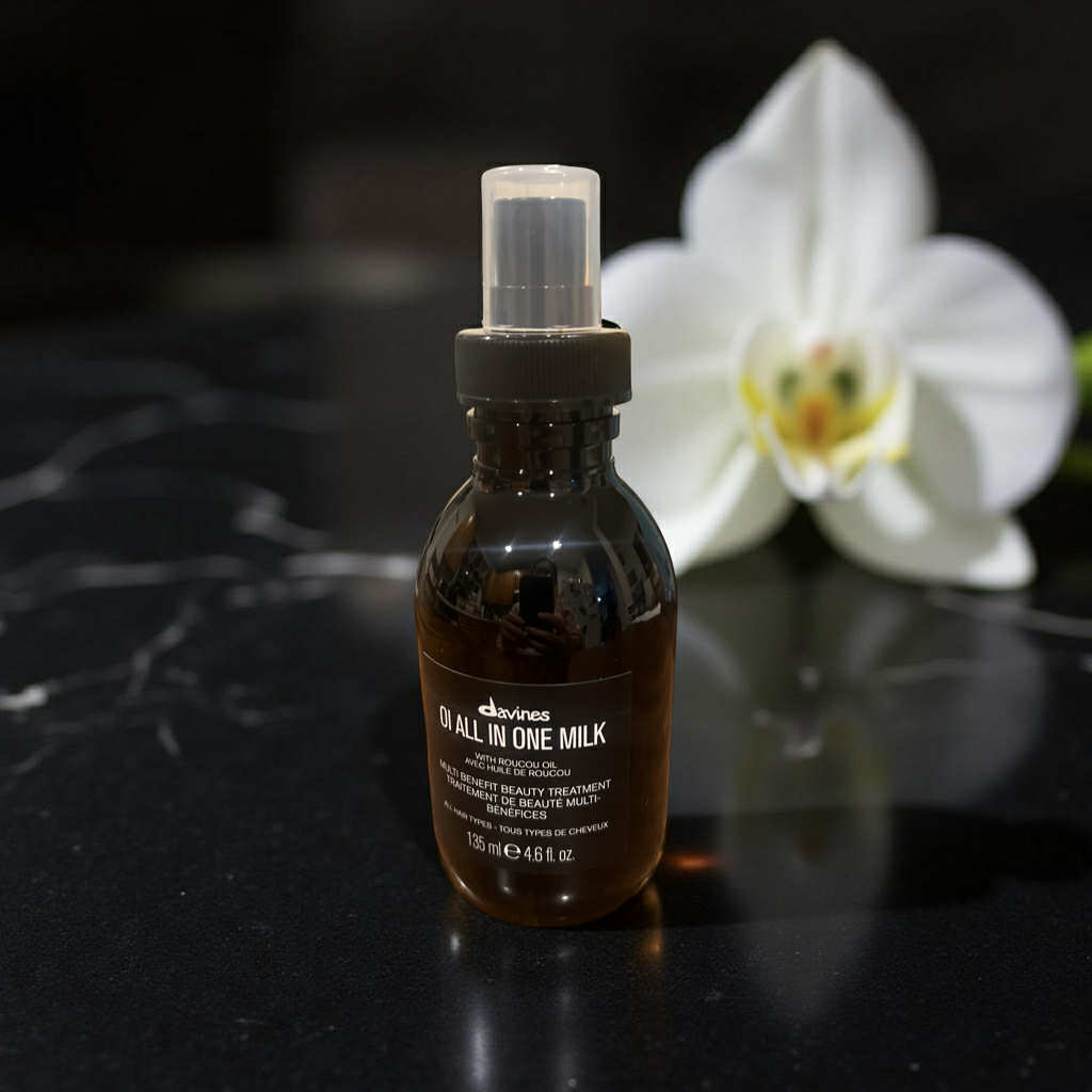 Davines OI All-In-One Milk 4.56 oz is a Lightweight, multi-function leave-in spray. Softens, detangles, controls frizz, and protects from heat. Adds hydration and shine while reducing static. Works on all hair types, including color?treated.