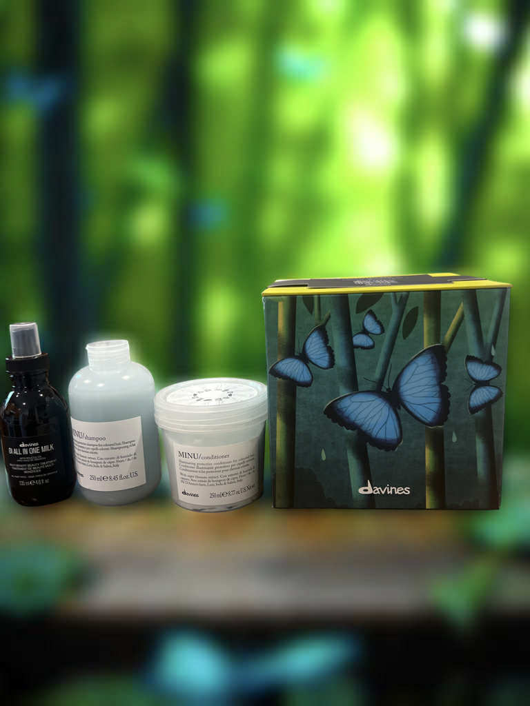Davines MINU line, part of their Essential Haircare collection, is specifically designed to keep bright, color-treated hair vibrant, shiny, and healthy. Pairing it with the OI All-In-One Milk makes for a complete routine that protects color while adding softness and manageability.
