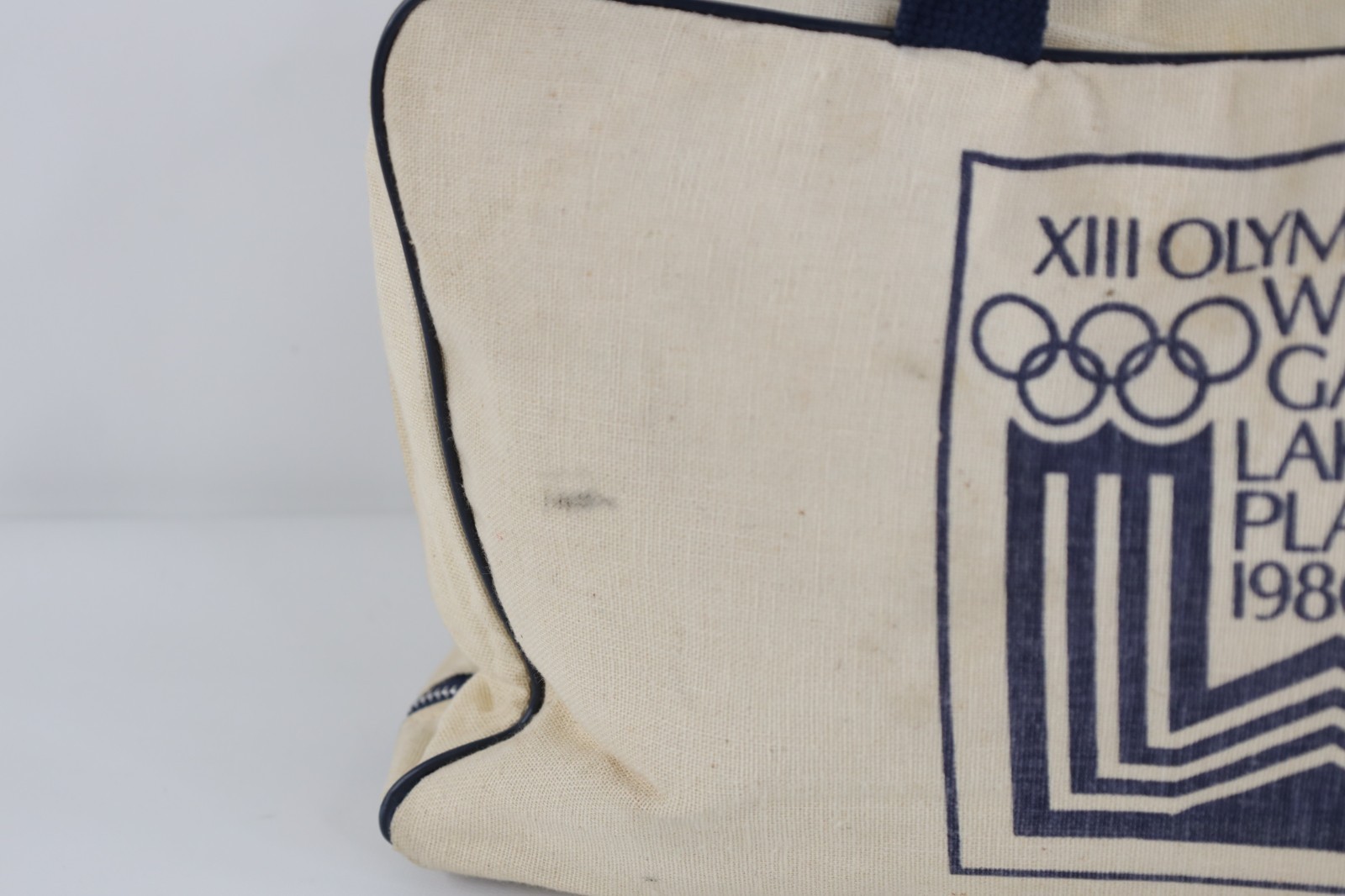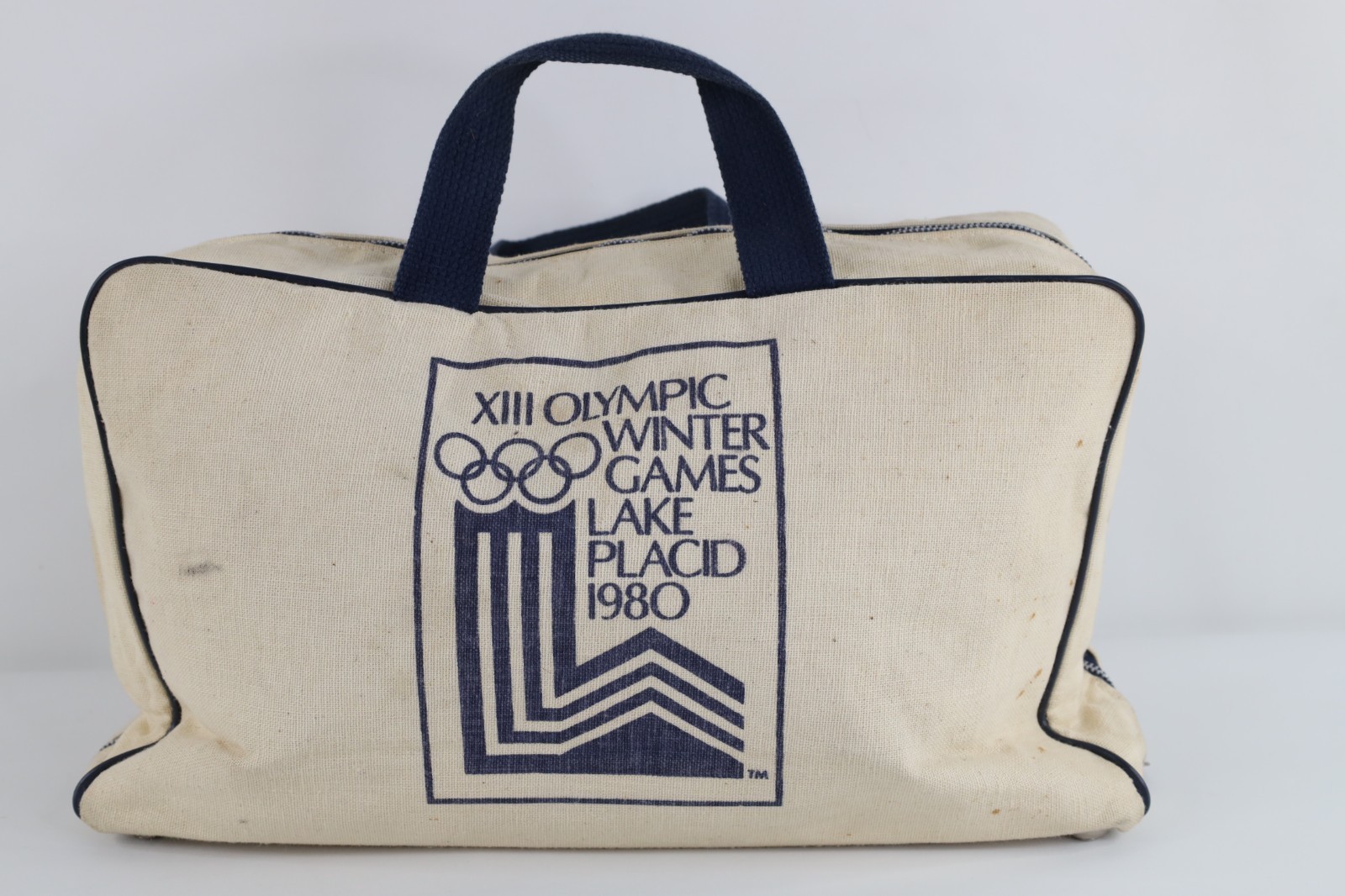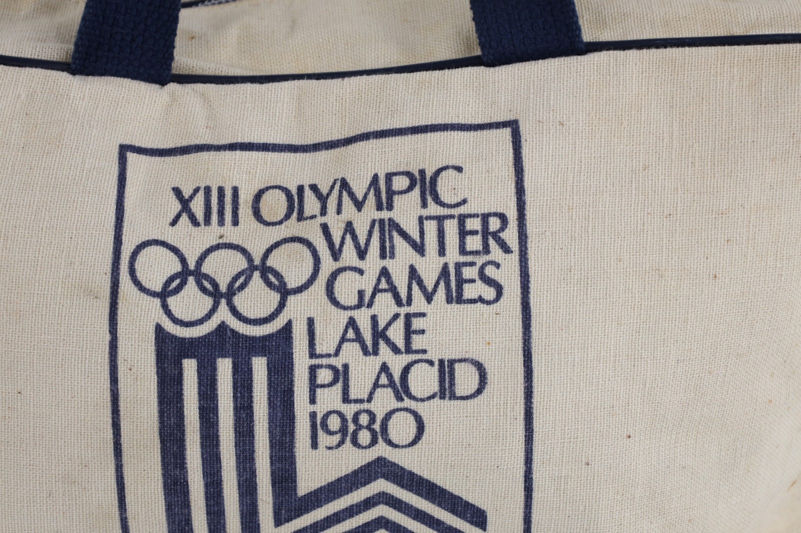 Vintage 80s 1980 Winter Olympics Lake Placid Miracle On Ice Handled Canvas Bag