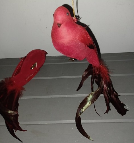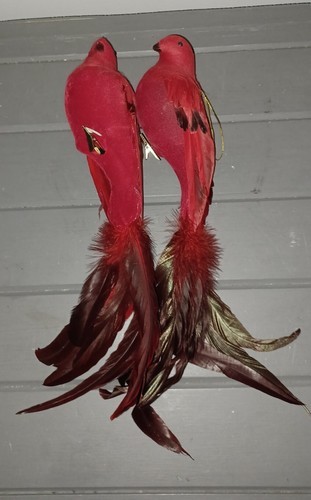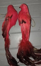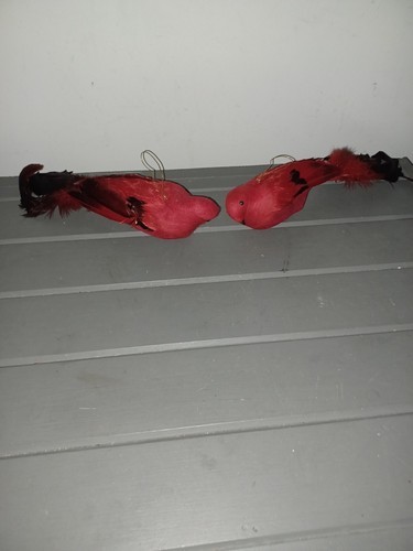 Cardinal Red Bird Christmas Ornaments Clipped Flocked Feathers Vintage Pair