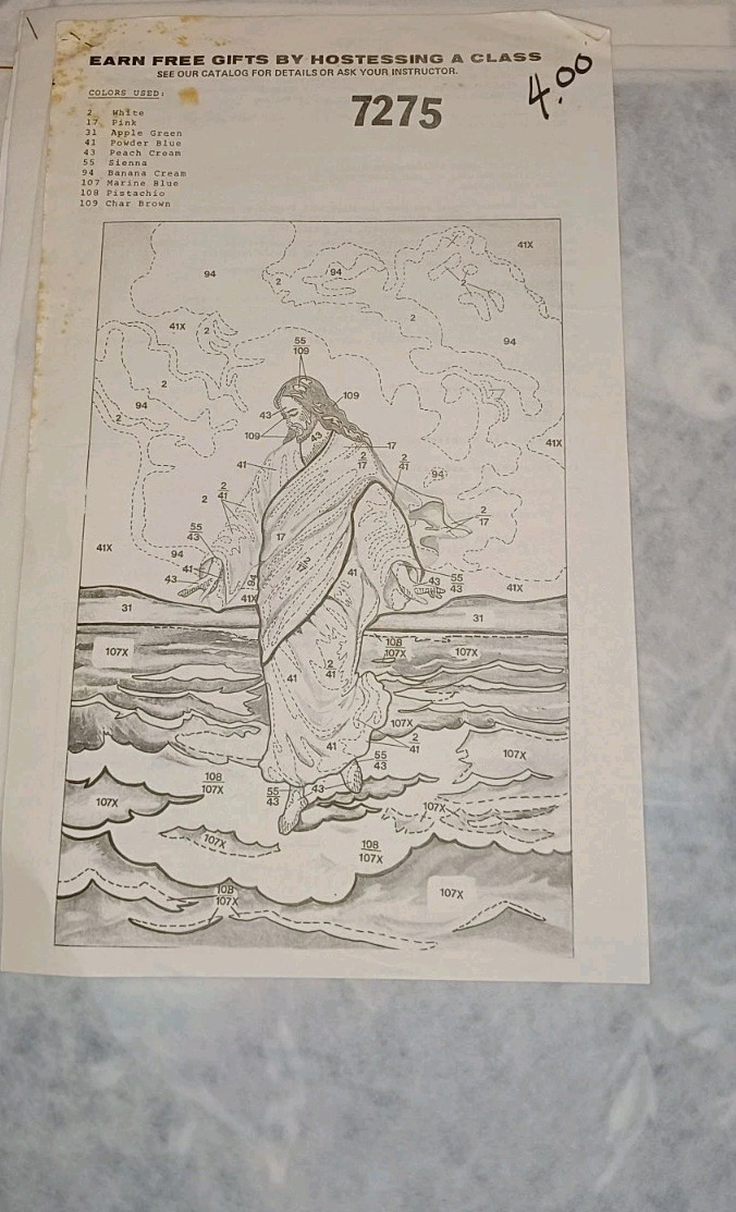 * TRI CHEM 7275 JESUS WALKING ON WATER Picture to paint TRICHEM 12x18" The instructions are stapled to the fabric.