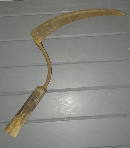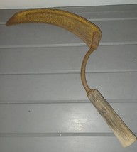 Vintage Antique Rustic Farm Hand Scythe Sickle Wood Handle
