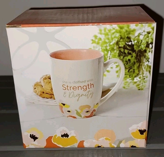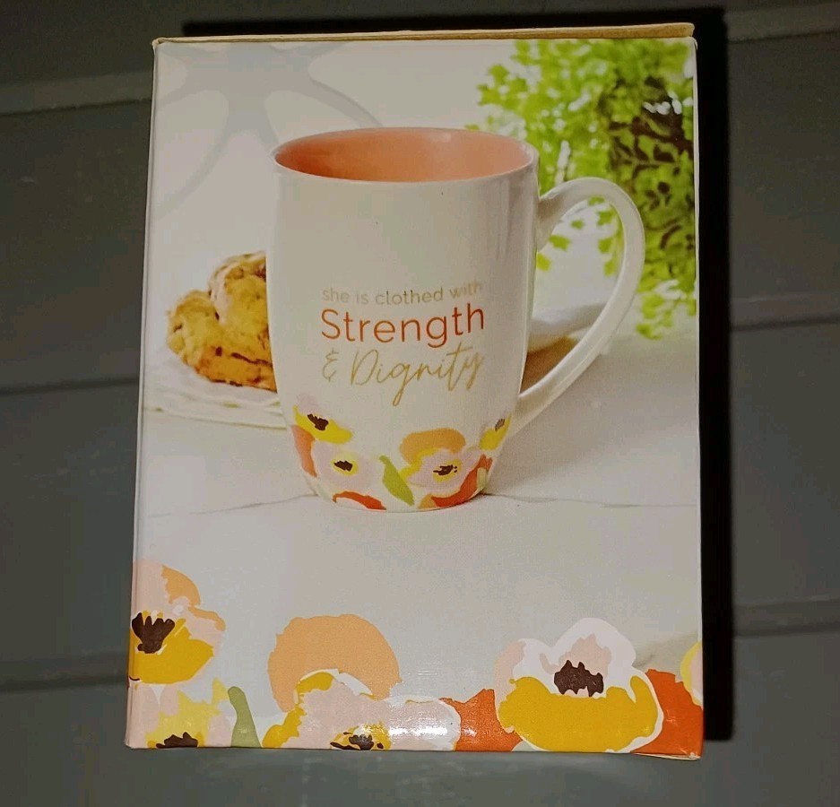 Strength and Dignity Pink Poppies Ceramic Coffee Mug Proverbs 31:25