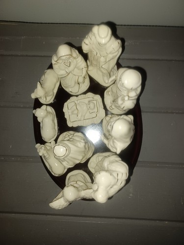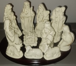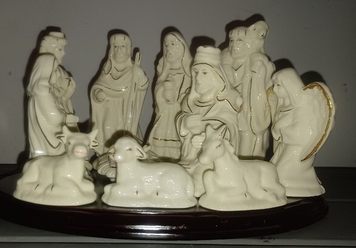 12 Piece Nativity Set Ecru with Gold Ceramic Figures Christmas Vintage