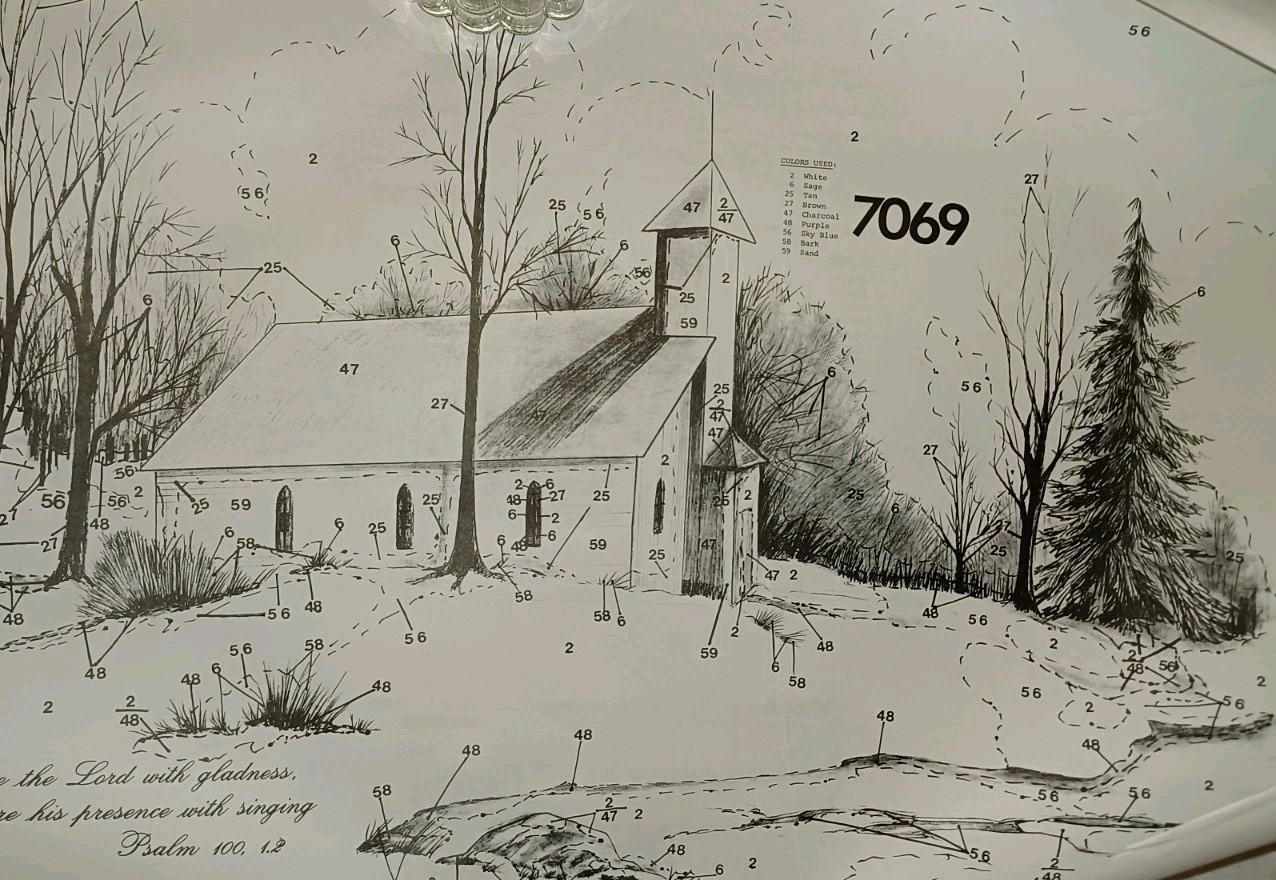 * TRI CHEM 7069 CHURCH Winter Scene PSALMS 100, 1.2 Picture TRICHEM 18x24 inches