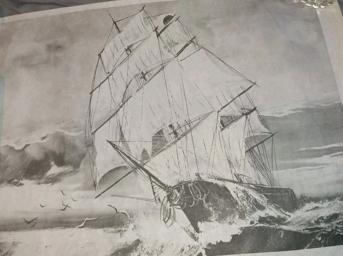 * TRI CHEM 7284 SAILING ROUGH SEAS SHIP Schooner Picture TRICHEM 18x24"