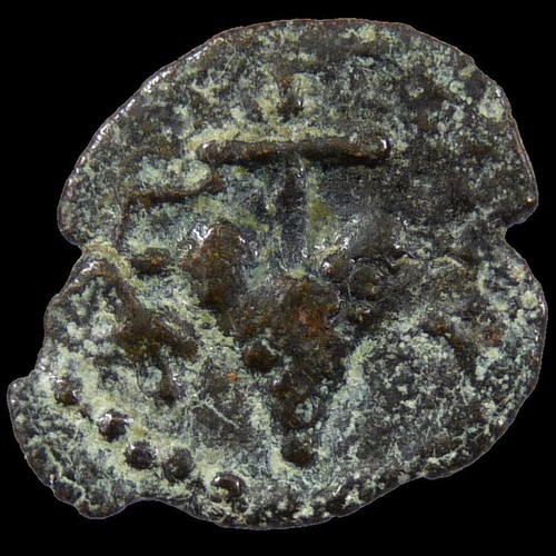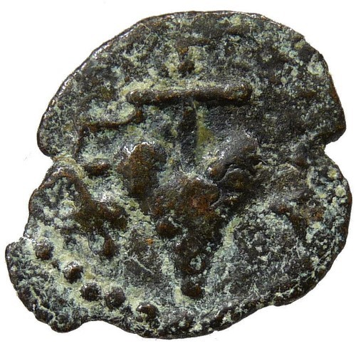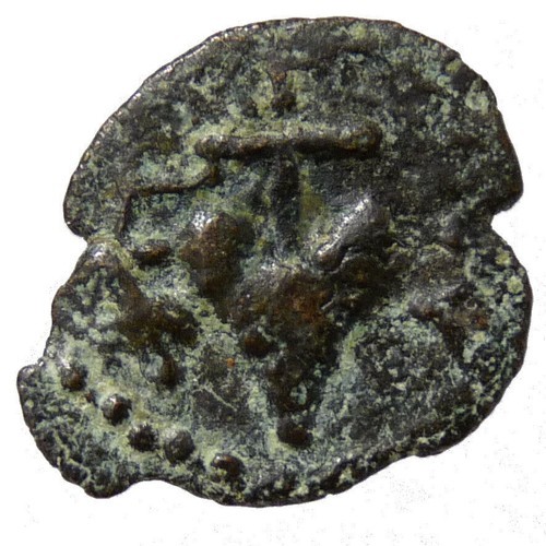 Obverse: HP???? (of Herod in Greek), bunch of grapes and vine leaf on stem.