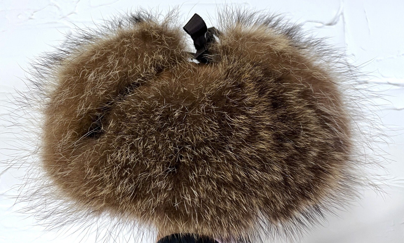 Fur Hat Aviator Raccoon Genuine ~Surell Designer=One Size NWOT- has flaps that are tied at the top until you need them. Gorgeous condition!