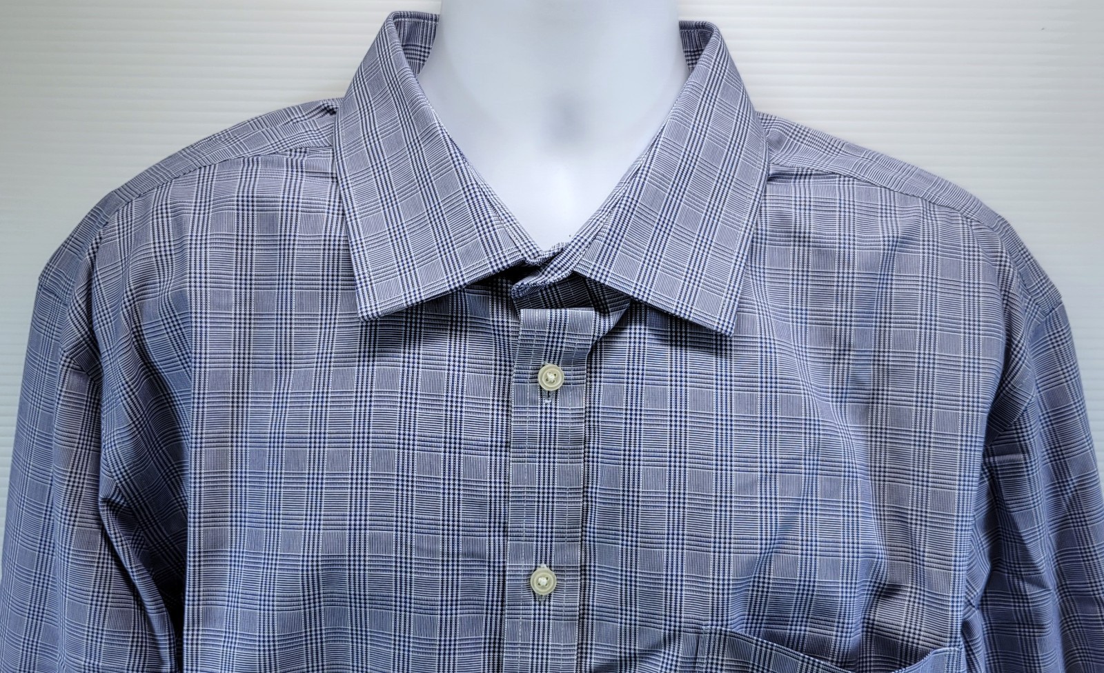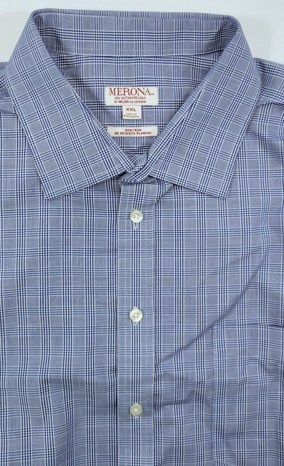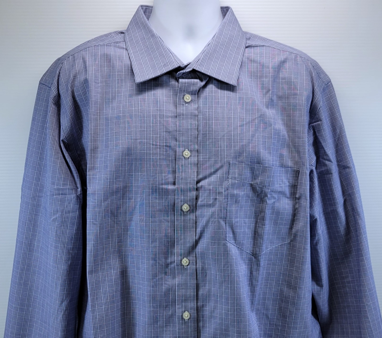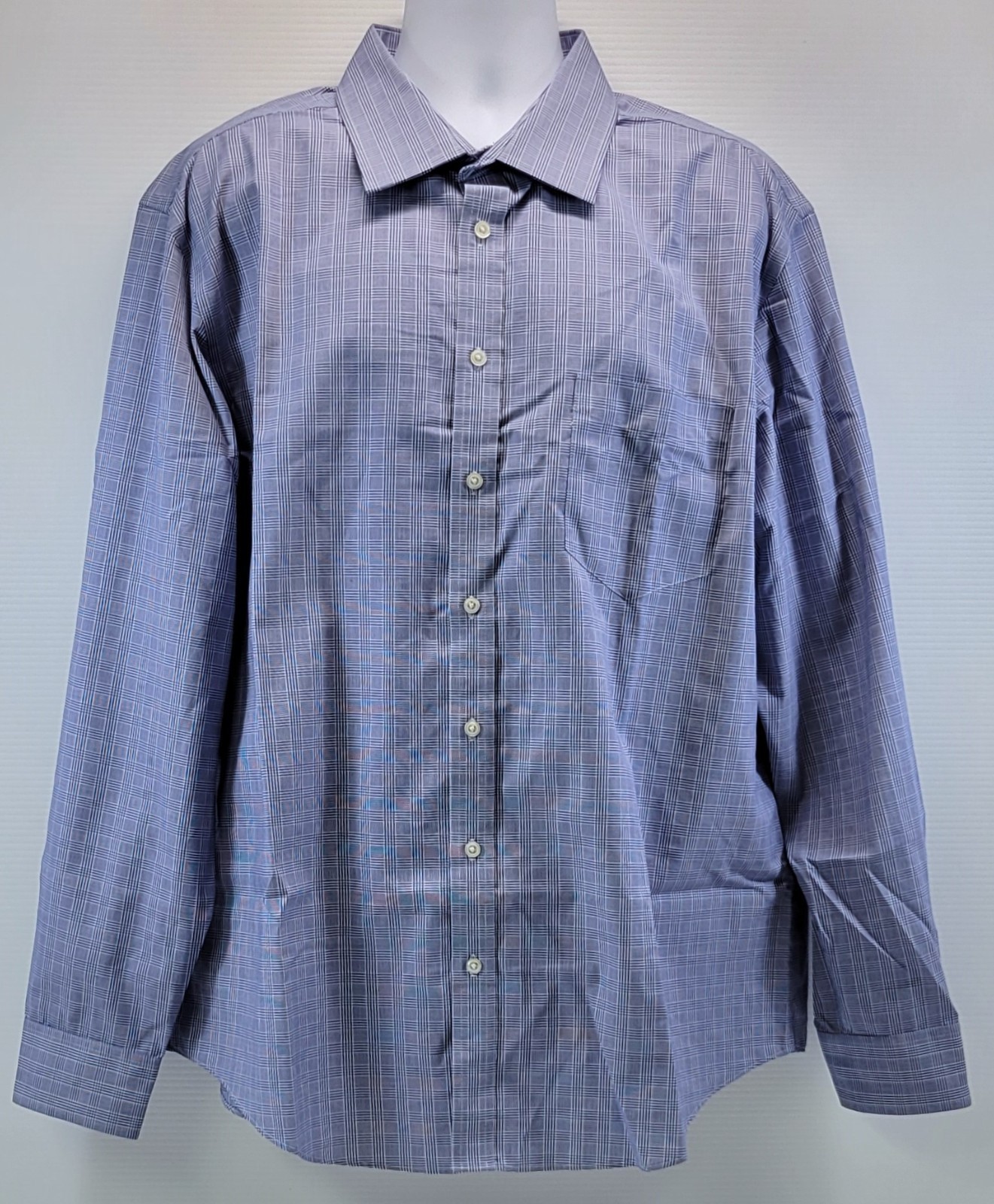 F) Merona Men Button Down Blue Plaid Pattern Dress Shirt XXL