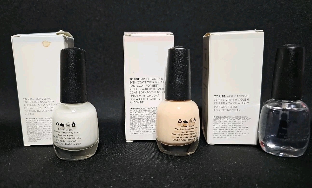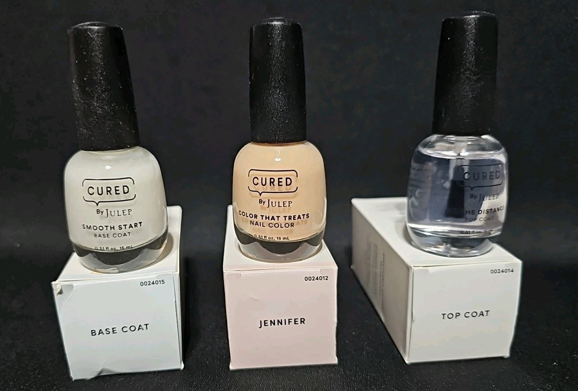 UP FOR SALE: New Cured By Julep 3 pc Set Nail Treatment Base Top Coat Pale Pink Jennifer