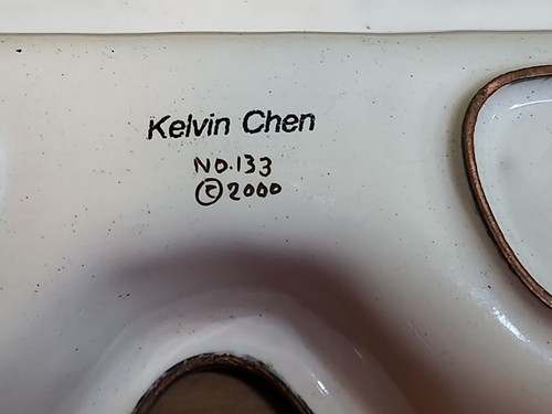 Vintage Kelvin Chen Japanese Tea Party Enamel Copper Eyeglass Holder #133 2000