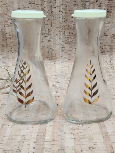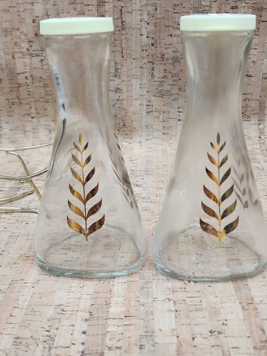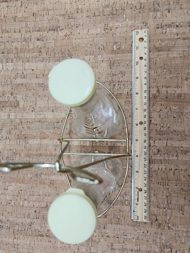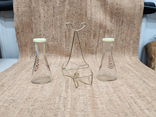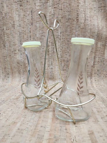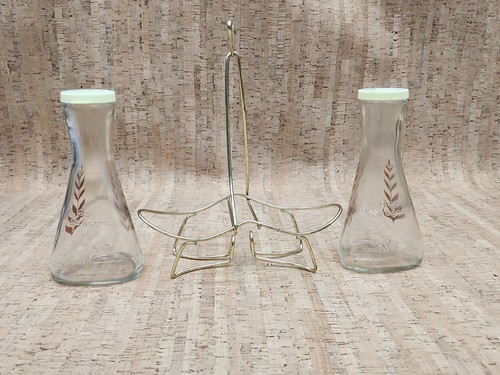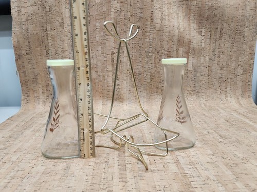 Vintage Good Seasons Salad Dressing Shakers Cruets Lids and Brass Holder Retro