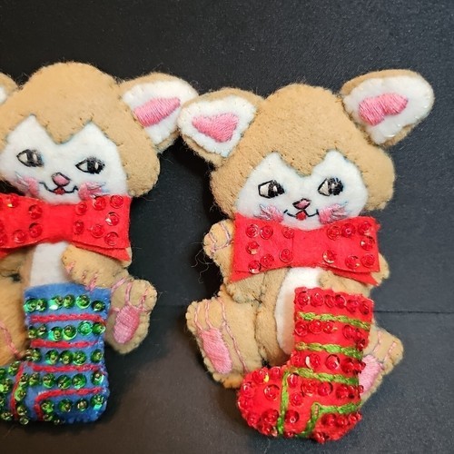 VTG Bucilla Purrfect Holiday Felt Jeweled Beaded Sequin Christmas Ornament 82105