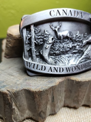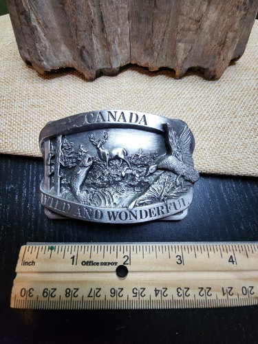 Bergamot Brass Works Belt Buckle Canada Wild and Wonderful 1985 VTG USA
