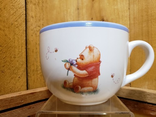 Disney Simply Winnie the Pooh Off White/Blue Flowers Large 16oz Soup Coffee Mug