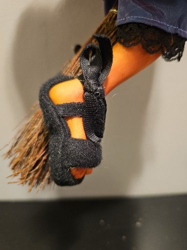 No rips or tears in the cloth. Some minor flea bites as seen in photos, no cracks in the ceramic. Excellent vintage condition! Broomstick is also real wood.