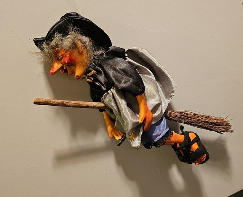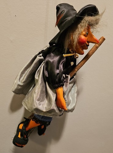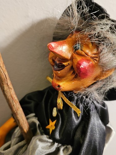 DEPT 56 Halloween Witch Riding Broom Gray Black Dress 12" Retired 2002