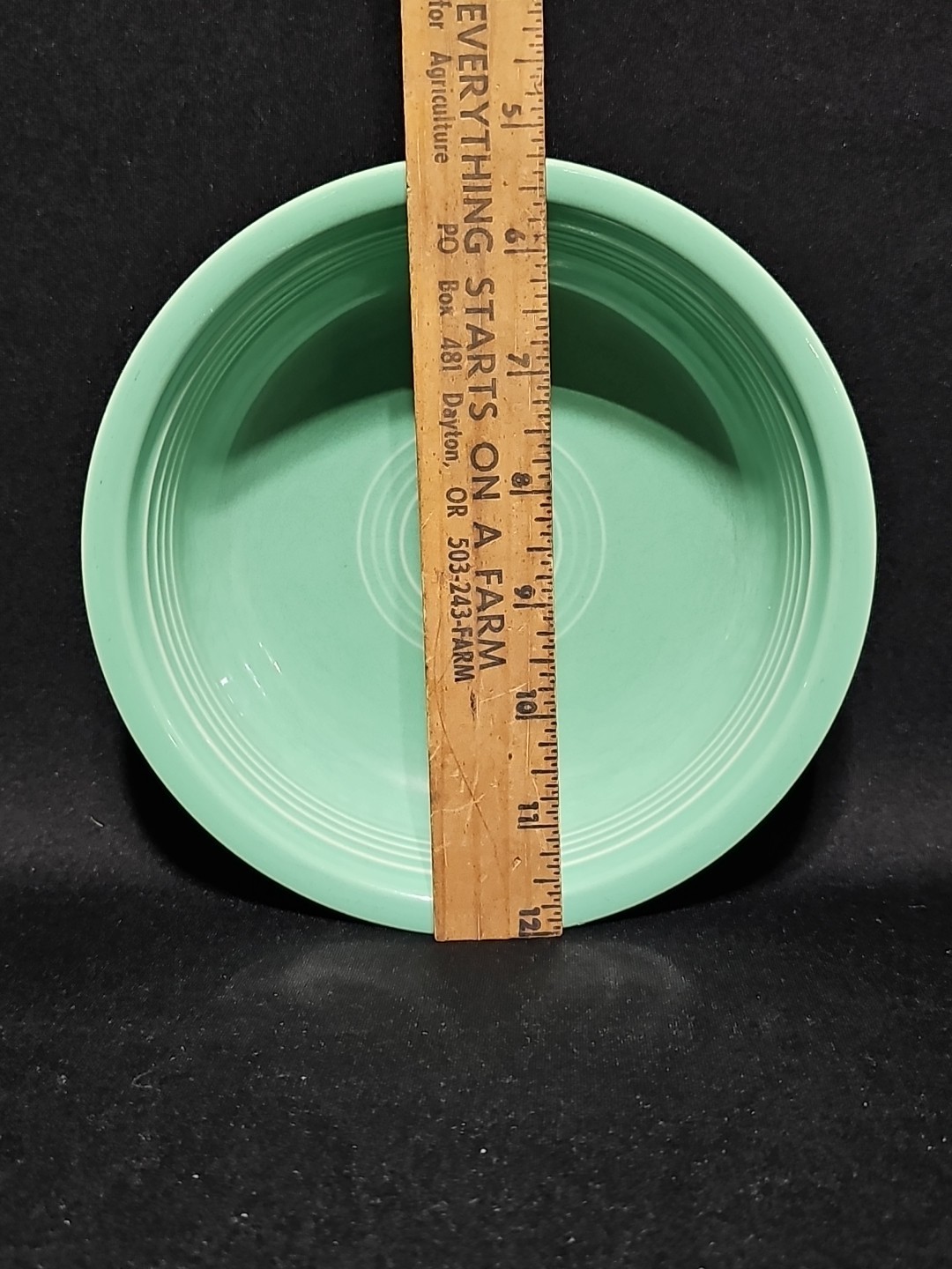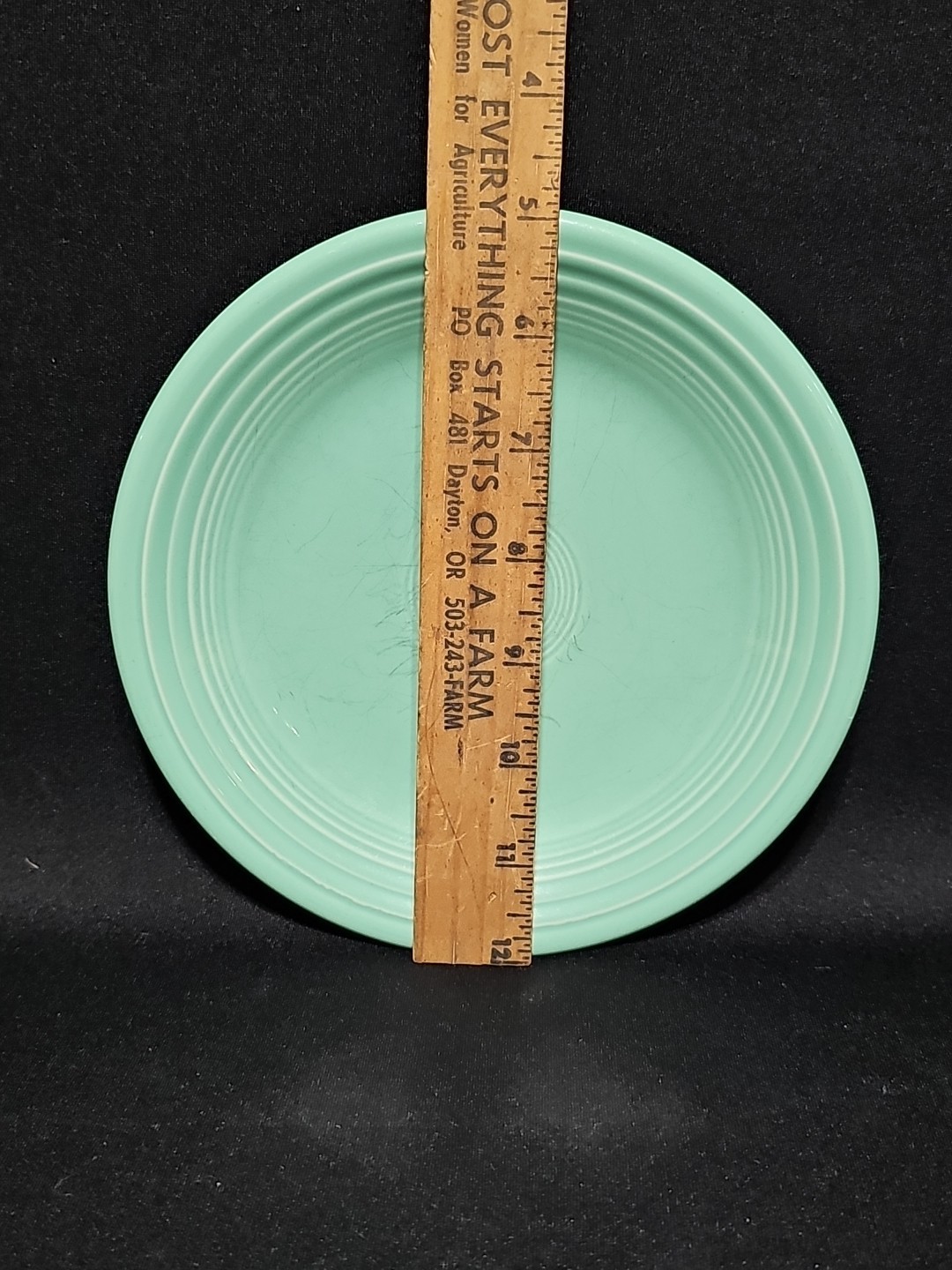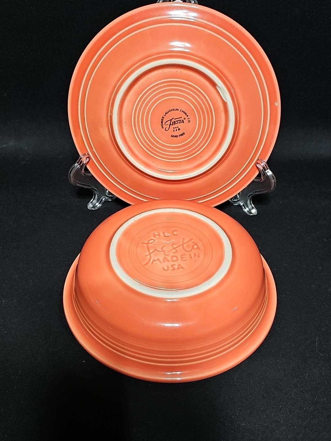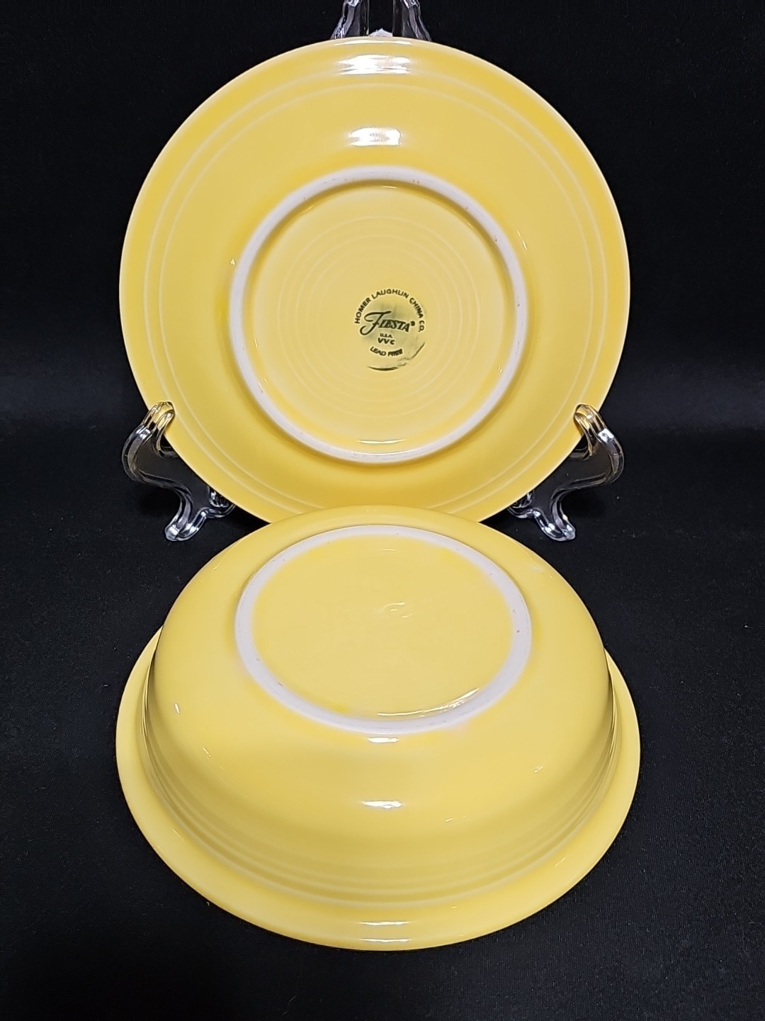 Overall, these pieces are in good pre-owned condition with no chips or cracks. The yellow, turquoise, and red-orange pieces have minimal wear. The light green set does show noticeable silverware marks, mostly on the plate?common with older Fiesta and visible under direct light. Please review all photos for the best look at condition.