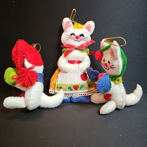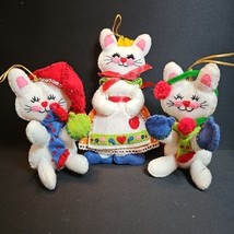 VTG Bucilla Three Litte Kittens Felt Jeweled Beaded Christmas Ornaments 2829