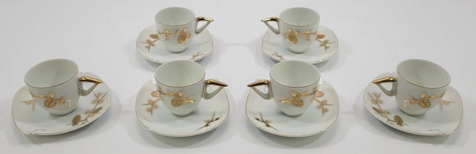N) Vintage Set of 6 Golden Pine By Trend Demitasse Coffee Cup Saucer Japan