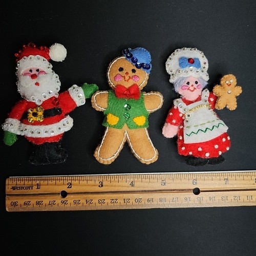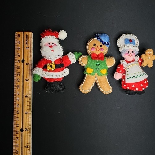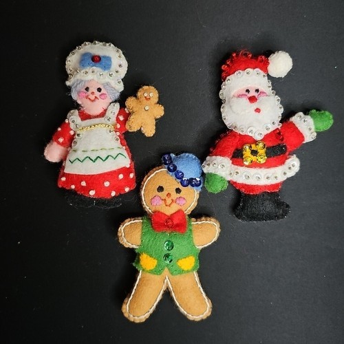 VTG Bucilla Mini Mini Figures 3 Felt Jeweled Sequined Christmas Ornaments 48786