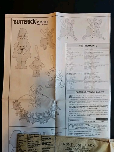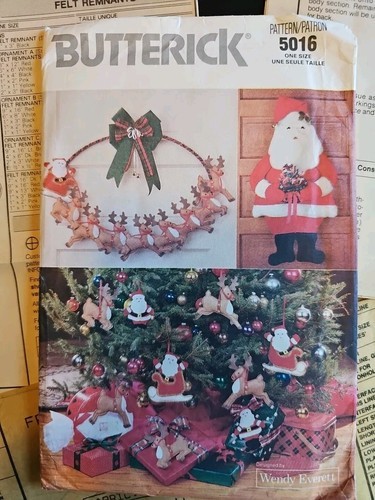 UP FOR SALE: Butterick Pattern 5016 Designed By Wendy Everett Felt Santa's Christmas Ornaments UnCut