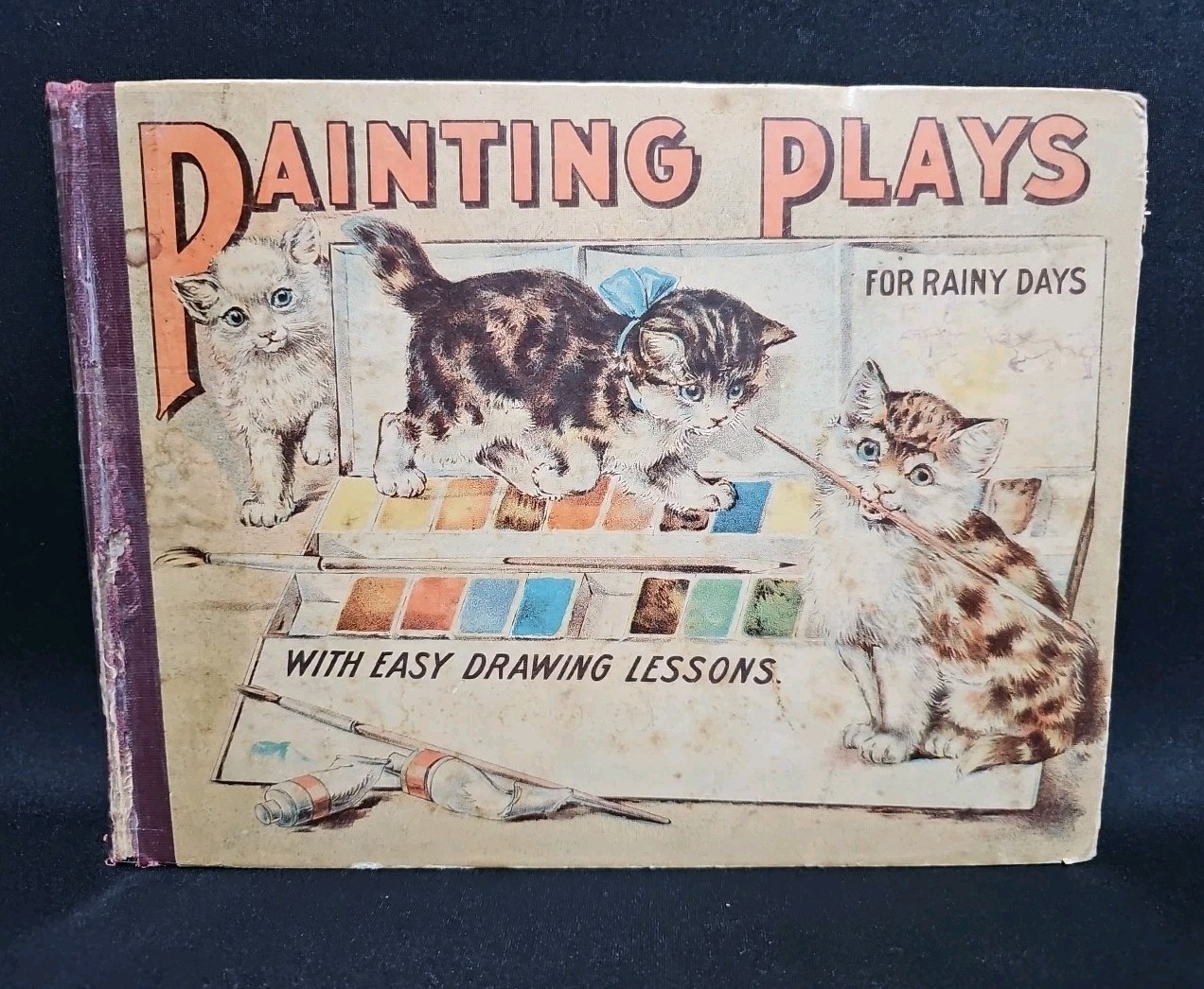 UP FOR SALE: Beautiful antique 1908 children's book for art lovers "Painting Plays For Rainy Days With Easy Drawing Lessons"; entertainment before radio!