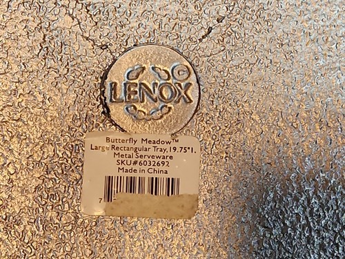 Lenox Butterfly Meadow Large Rectangular Tray 19.75" Metal Serveware #6032692